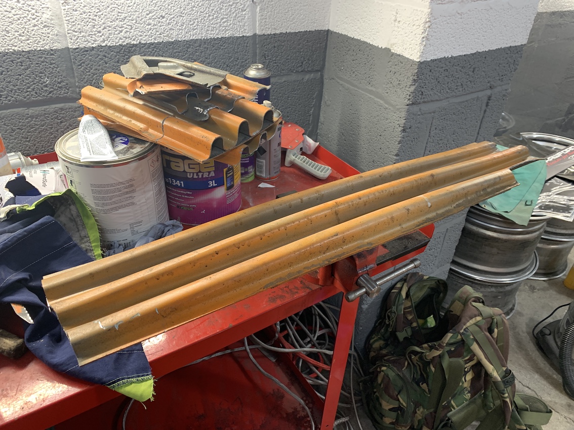 | Senior Member    Group: Members Posts: 1,187 Joined: 5-May 03 From: Findlay, OH Member No.: 652 Region Association: Upper MidWest    | After putting it off, replacement on hand, I got the windshield with stone crack, removed. Greg at All Service Glass in Lima OH is an experienced professional. He is coming back to my shop next week to install the new glass. In the meantime I’ll clean up where it goes. No rust! Amazing. I’ll also repaint the black trim. |