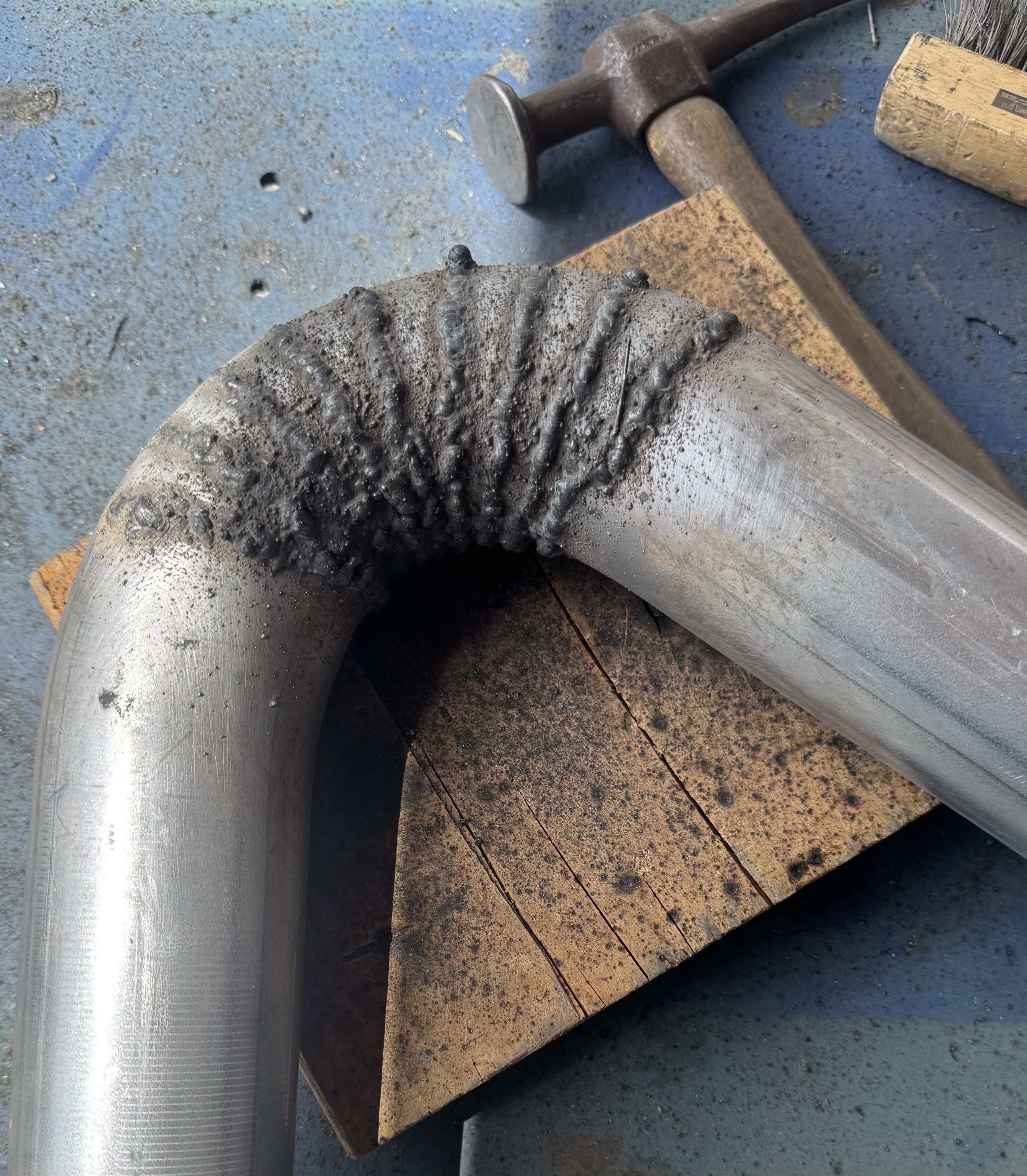 Thank goodness that the pipe only shows a little under the valance. My welds look atrocious...But it is solid.
