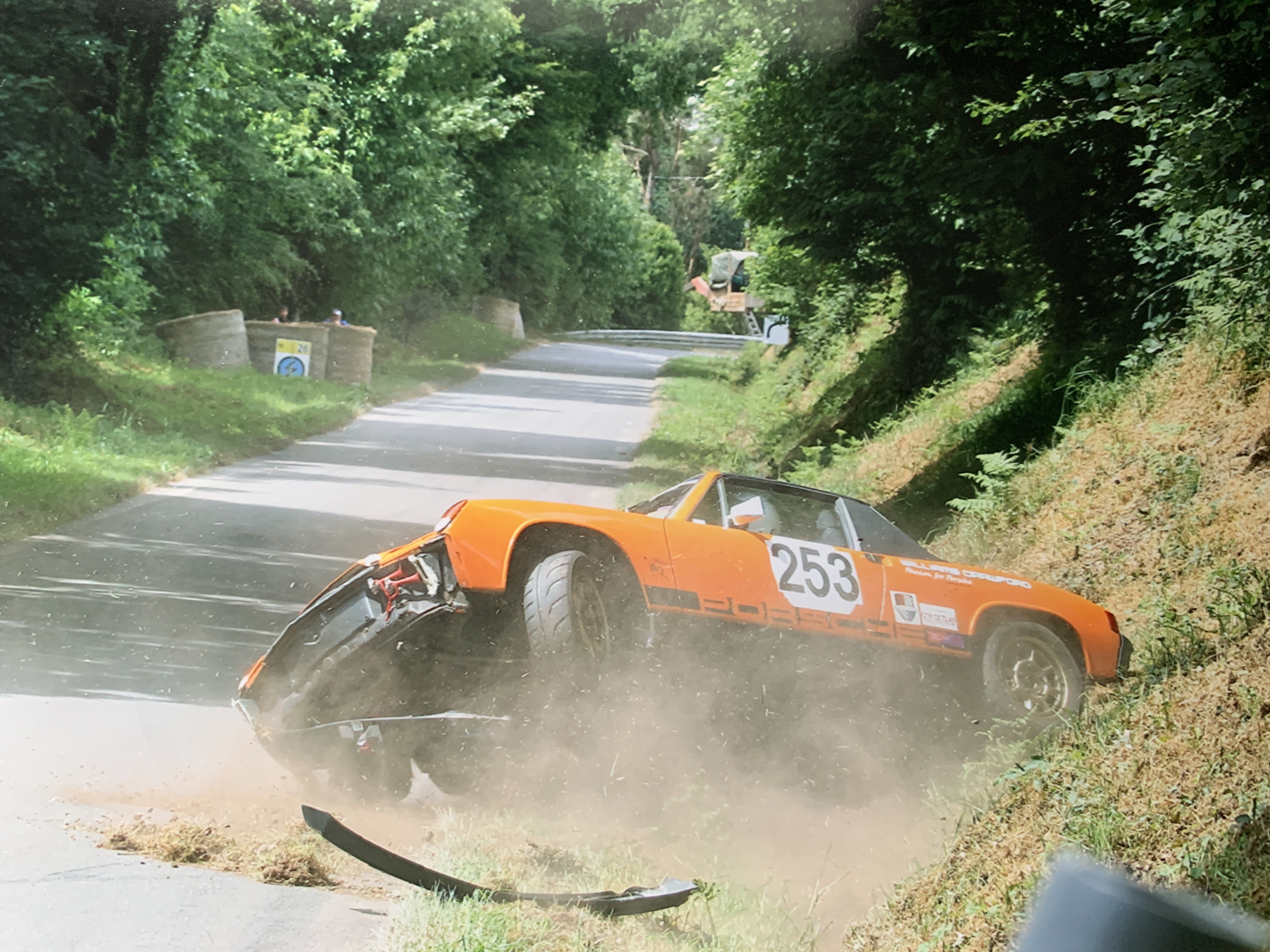 Spent the weekend in Brittany, France, at the St Gouéno Master hillclimb. Didn't go quite to plan, but only real damage is to left front where the torsion bar mount has been pushed upwards, pulling in the inner wing (fender!).