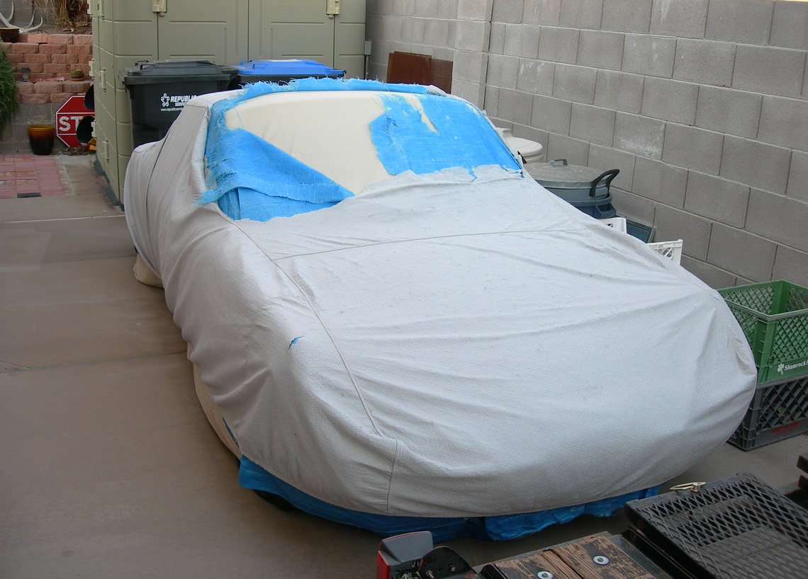 Today I threw away the old top cover and tarp. (IMG:style_emoticons/default/stromberg.gif) Much to my delight, all 4 flat tires are holding air. I cleaned up the accumulated leaves in the back corner, dusted off the car and took it for a spin around the block. (IMG:style_emoticons/default/driving.gif) Ok. (IMG:style_emoticons/default/bs.gif) So I just sat in it, played with the controls and made vroom, vroom sounds. The old base cover is now the top cover, with 2 new layers underneath. It should be safe and secure for another 3 years. (IMG:style_emoticons/default/yellowsleep[1].gif) ![]() |