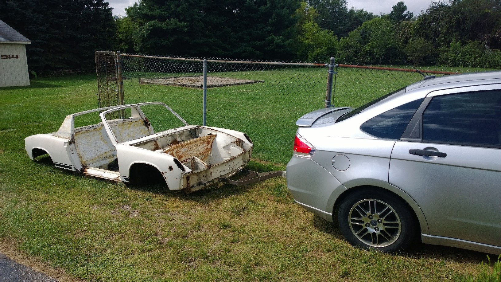 Pulled it out of the 914 barn, and going to post it. Owned since the 80's parked it when the ear failed about 1983 Always inside. All the interior will go to the project car, being in humid Michigan and stored inside the interior is in great shape. No cracks or splits in the interior trim, and yes a perfect dash cap. All just as I left it some 30 years ago. Anyone need a some what rusted shell? Amazing how easly it was to pull across the lawn, on its belly.