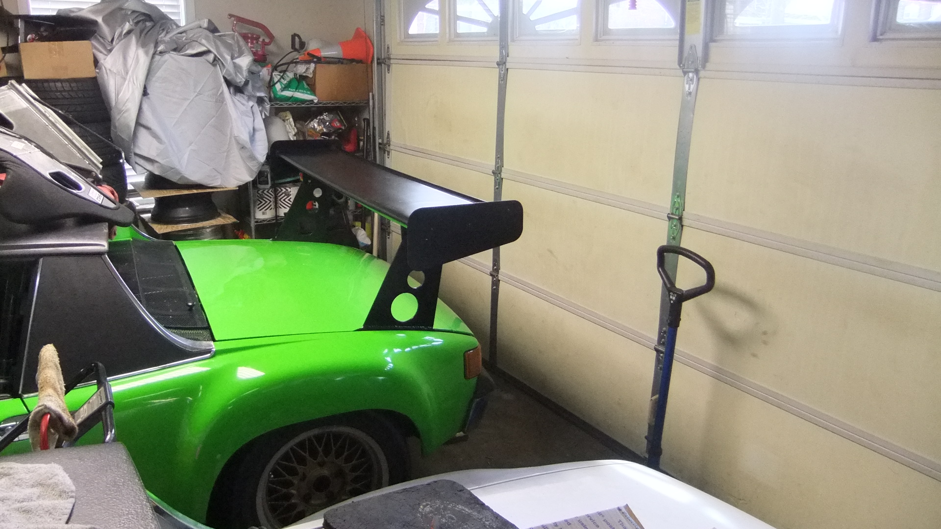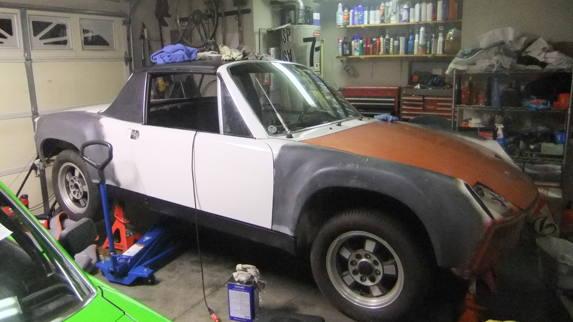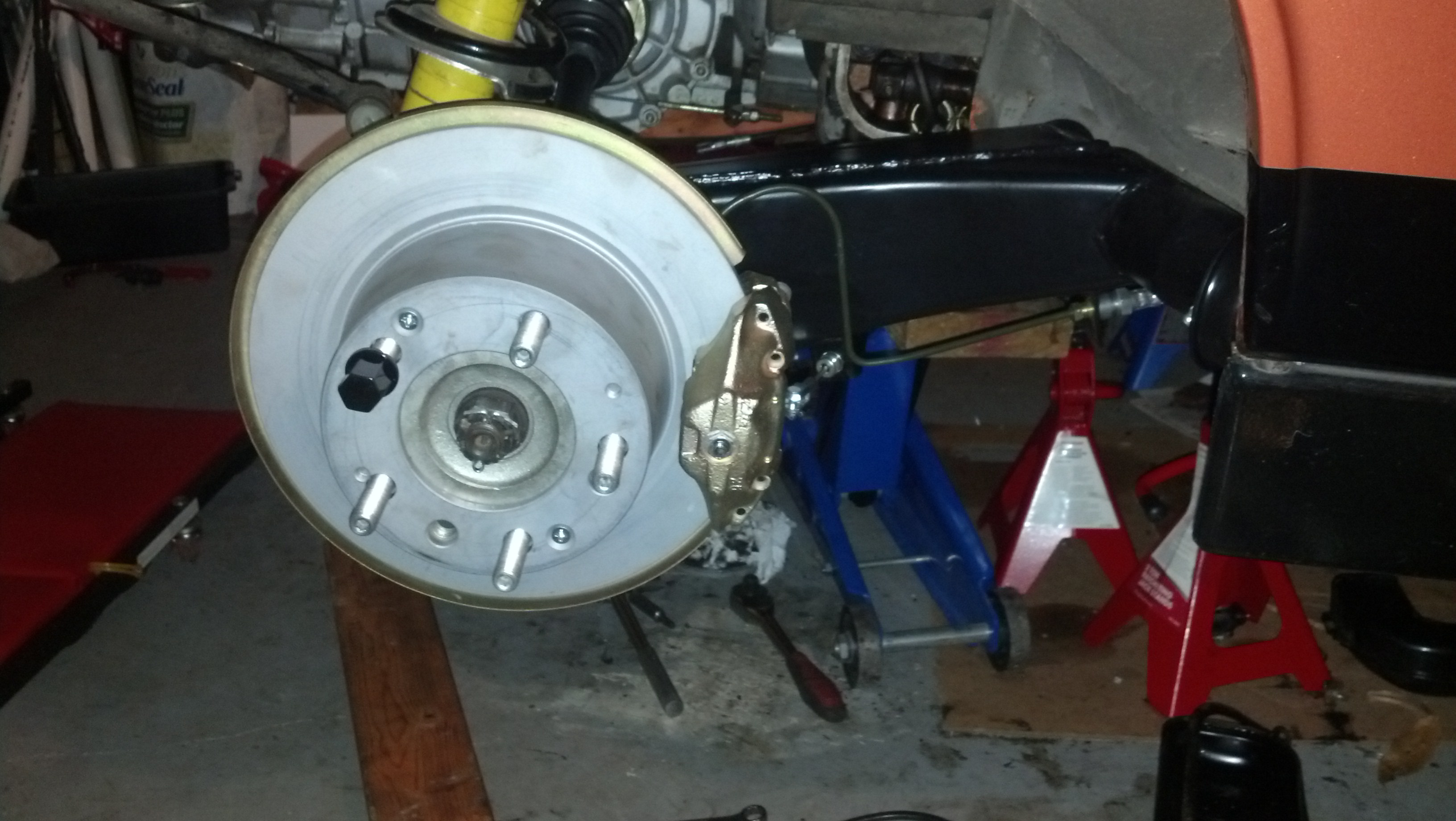 914 stuff: New Falken Ziex ZE-512 tires mounted and balanced on a set of powder-coated EMPIs. These are going on my wife's car (until I get her stock 'steeles' powder-coated) ... then they'll probably go on the 'BB' until my other (better) set of ATS Classics get refurbished (Al Reed ? ) (IMG:style_emoticons/default/smile.gif) ![]() Received new brake hoses from Bob 'bulitt' for her car (have almost everything for her restoration now), a German loop (tan) carpet set (for the 'BB') from Mark 'Mikey', and Mike Bellis sent me a bunch of those nifty split rivets, so hopefully they'll do the trick of holding the FG rockers on the 'BB' (IMG:style_emoticons/default/smile.gif) '67 Bug stuff: Checked crank end play: .120" (IMG:style_emoticons/default/blink.gif) ... uh, no wonder why the RMS was leaking. Picked up an assortment of shims, a new o-ring and a RMS to correct that issue. ![]() The PO literally threw this motor together and failed to install a lot of the required cooling tins too (IMG:style_emoticons/default/dry.gif) ... Located and hot-tanked the needed tins and painted some of the visible stuff. The MC reservoir was leaking where the lines connected - fixed that and readjusted the front bumper (while I was down there). It was pretty crooked. ![]() Scrubbed and painted the wheels and threw the bling accessories back on (IMG:style_emoticons/default/laugh.gif) ![]() Other stuff: Blasted and primed some rusty Honda Mini Trail wheels (we're also building up a few basket-case bikes that have been sitting around for the past 10 years). ![]() Way too many irons in the fire (IMG:style_emoticons/default/headbang.gif) |
