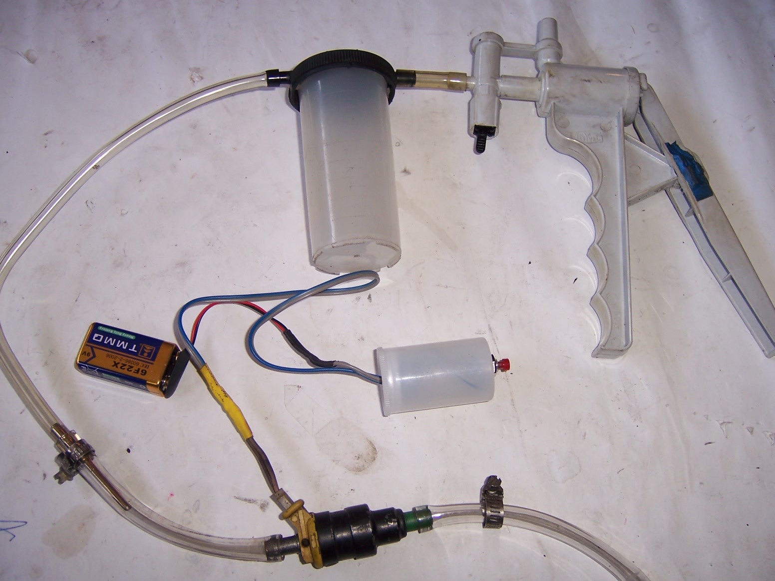backflushed a handful of injectors; it really works and debris did flow out. built this rig after seeing some else on the board post a pic of his set up.