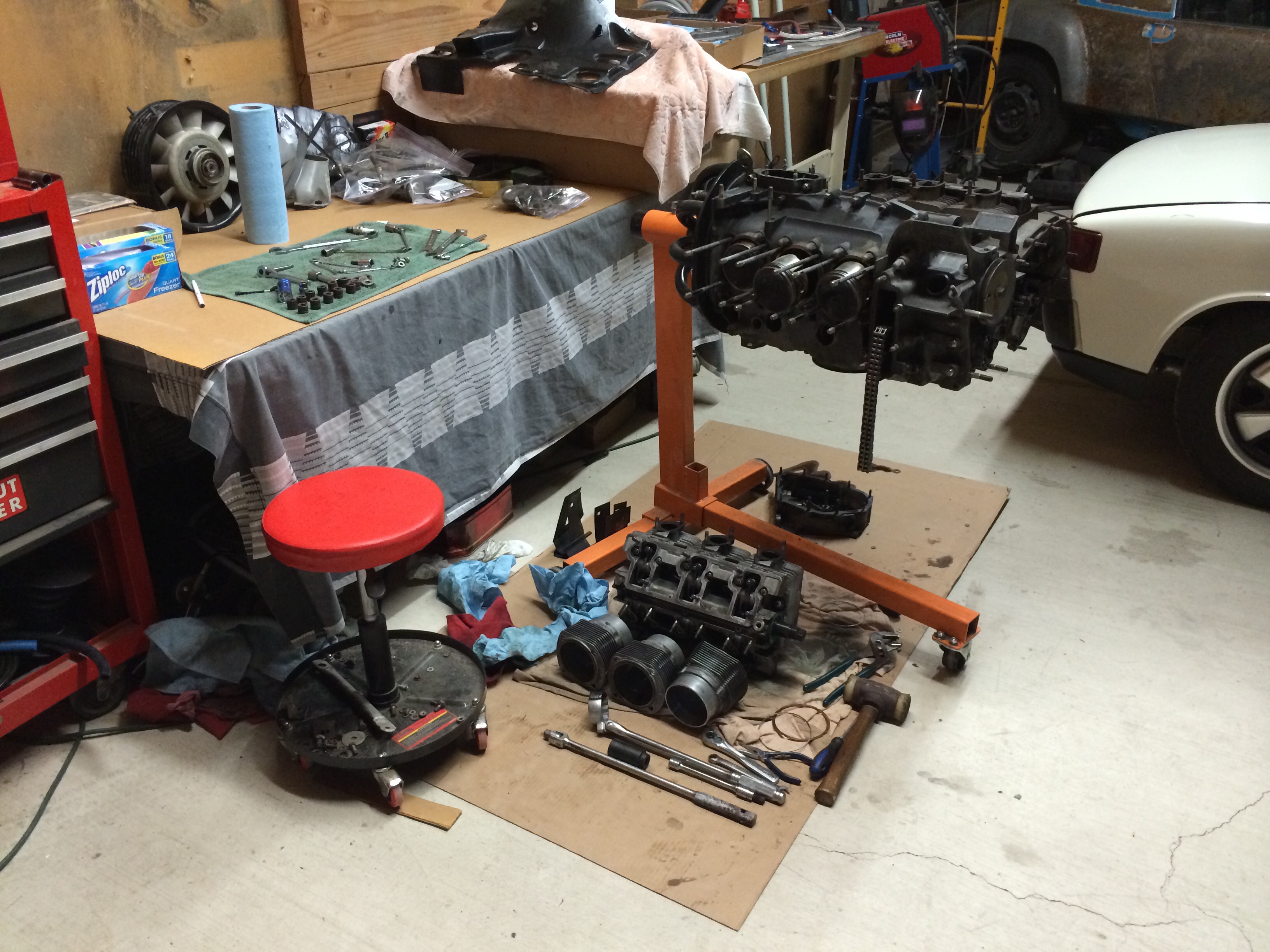 Got my '73 restoration project running this afternoon for the first time during reassembly. Moved under its own power for the first time in 4 years!! Gotta get the rear suspension to settle some now... BTW, I've got my old Simplex Challenger go-kart (which I got in 1961!) and recently found a rebuilt West Bend 580 just like it had way back when. Gonna restore the kart someday as well!! Those old Karts are very cool but pricey! I just sold a basket case west bend 700 off a weed wacker for $300. (IMG:style_emoticons/default/screwy.gif) now i can buy like 5 brand new weed wackers (IMG:style_emoticons/default/laugh.gif) What did I do to the 914 today? Thought about driving it before the battery goes flat. (IMG:style_emoticons/default/blink.gif) |