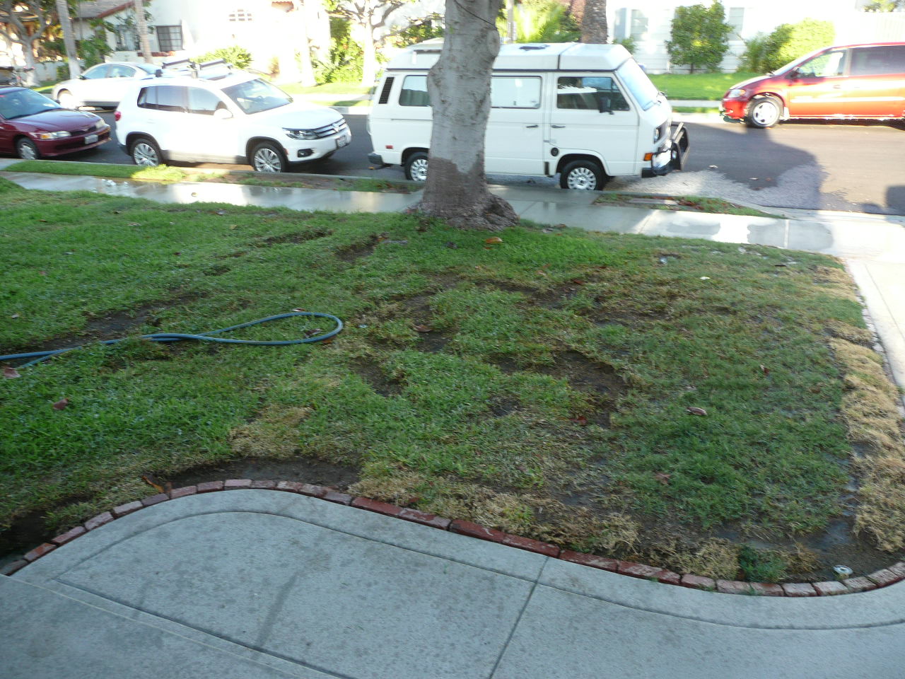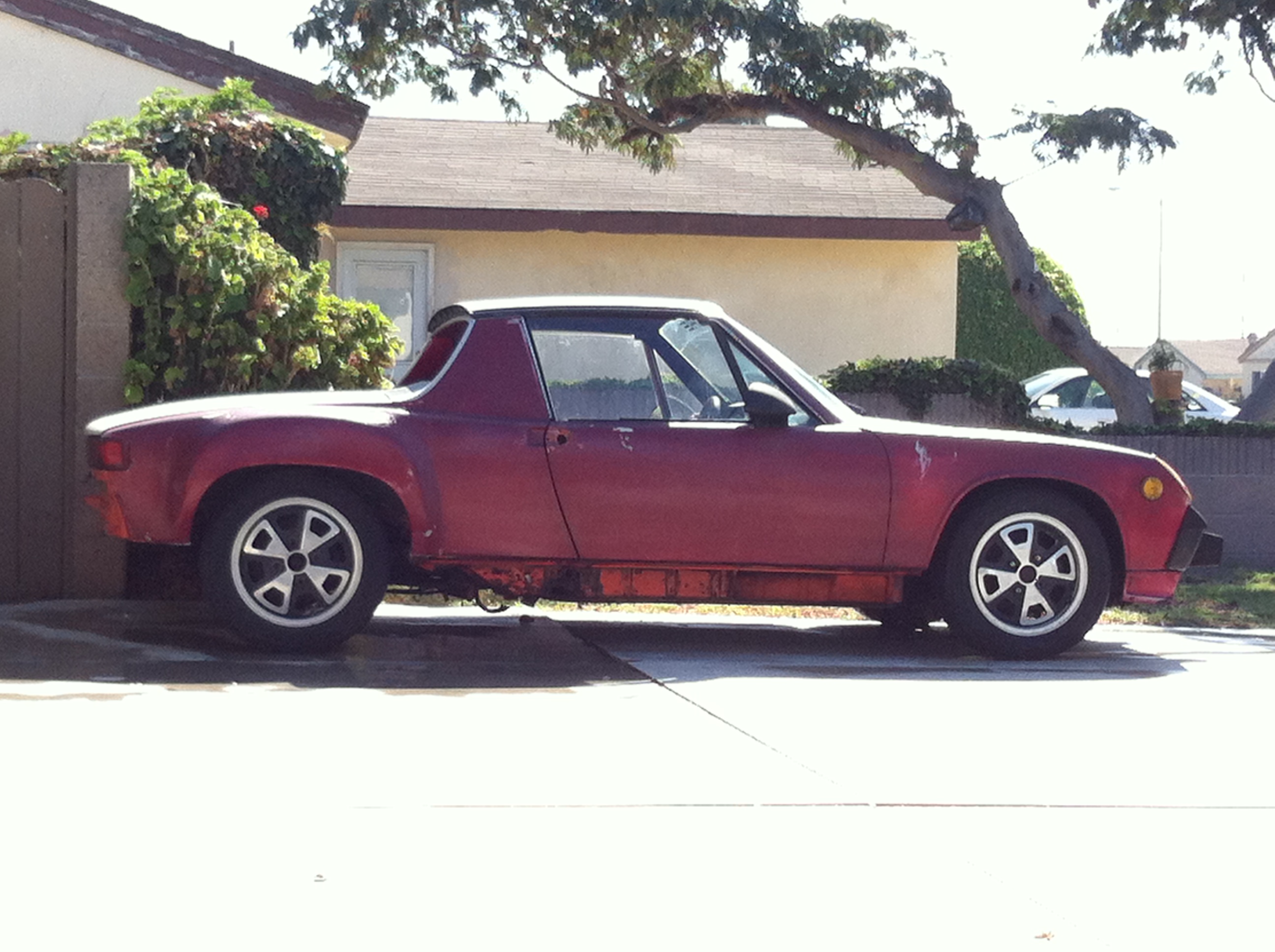 Decided to powdercoat instead a silver with gloss clear. Just coming out of final cure Good decision, the wheels look really nice (IMG:style_emoticons/default/aktion035.gif)(IMG:http://www.914world.com/bbs2/uploads_offsite/s24.postimg.org-11125-1410475166.1.jpg) Well, almost finished up with the front yard project. May not look like it was a big job from the pic, but it took my friend (Mark) and I 5 full days de-rooting (hate magnolia tree roots) and installing a new sprinkler system. We filled 6 35-gallon trash barrels with roots and installed a 4-zone sprinkler system with 18 heads. Wife is happy and this little honey-doo has earned me at least a couple of weeks to goof around with some automotive stuff (IMG:style_emoticons/default/mueba.gif) I'll eventually get another muffler tip for the banana, and I'll run a sheet metal screw to secure it next time (IMG:style_emoticons/default/idea.gif) |
