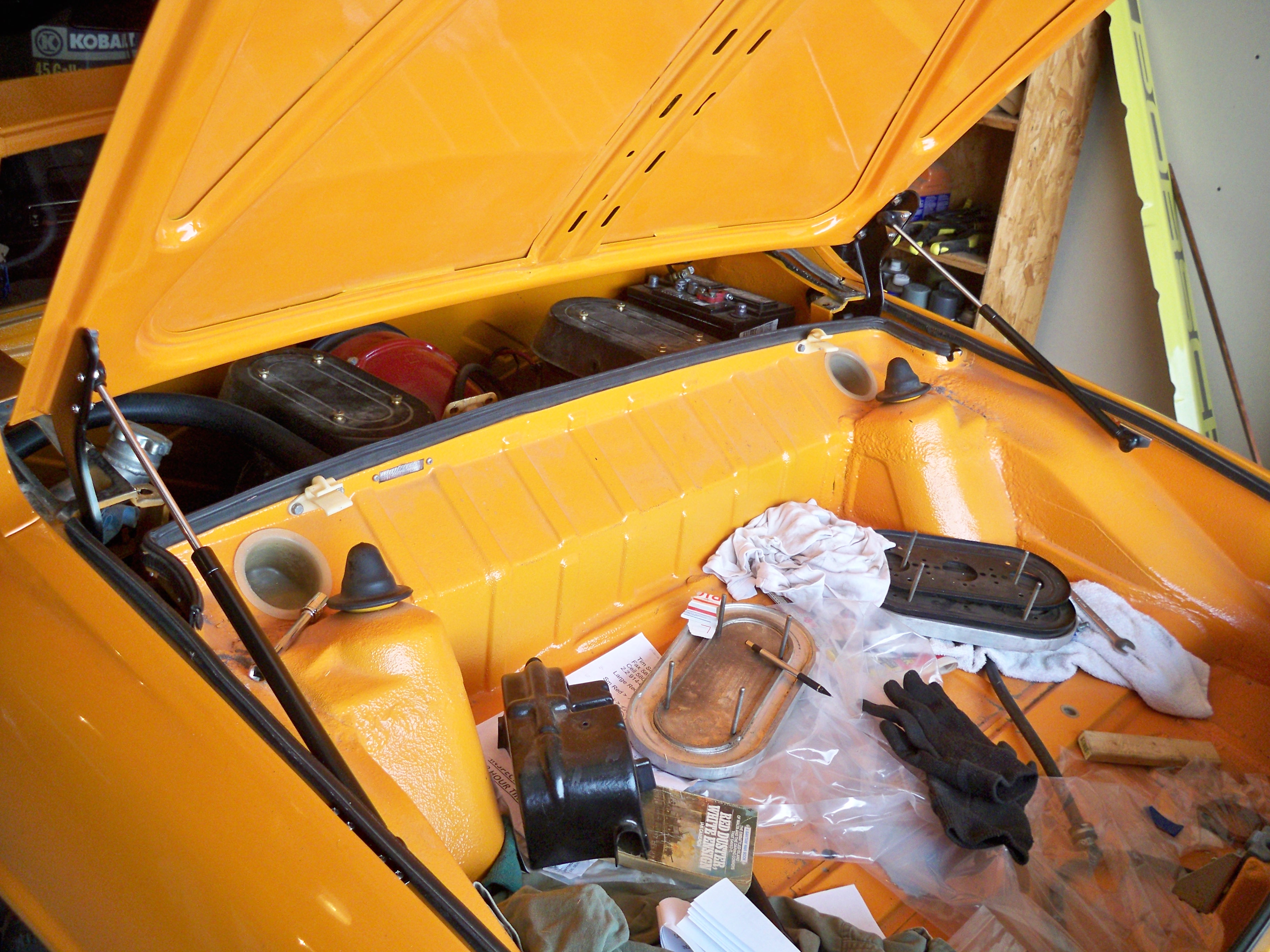 Several months ago I installed front trunk struts from Camp 914. Today I finished installing rear trunk lid struts. Ignore the junk in the trunk.