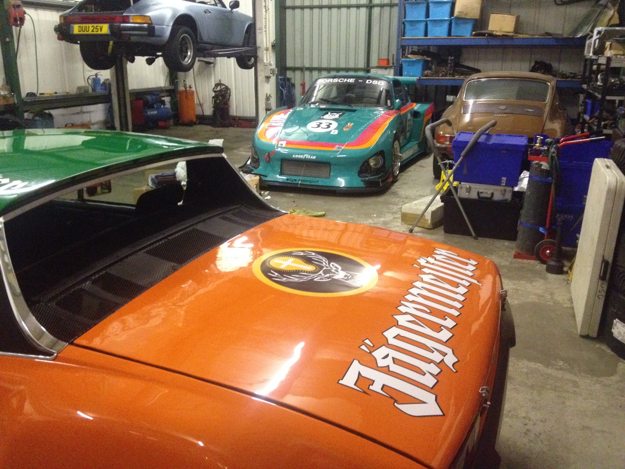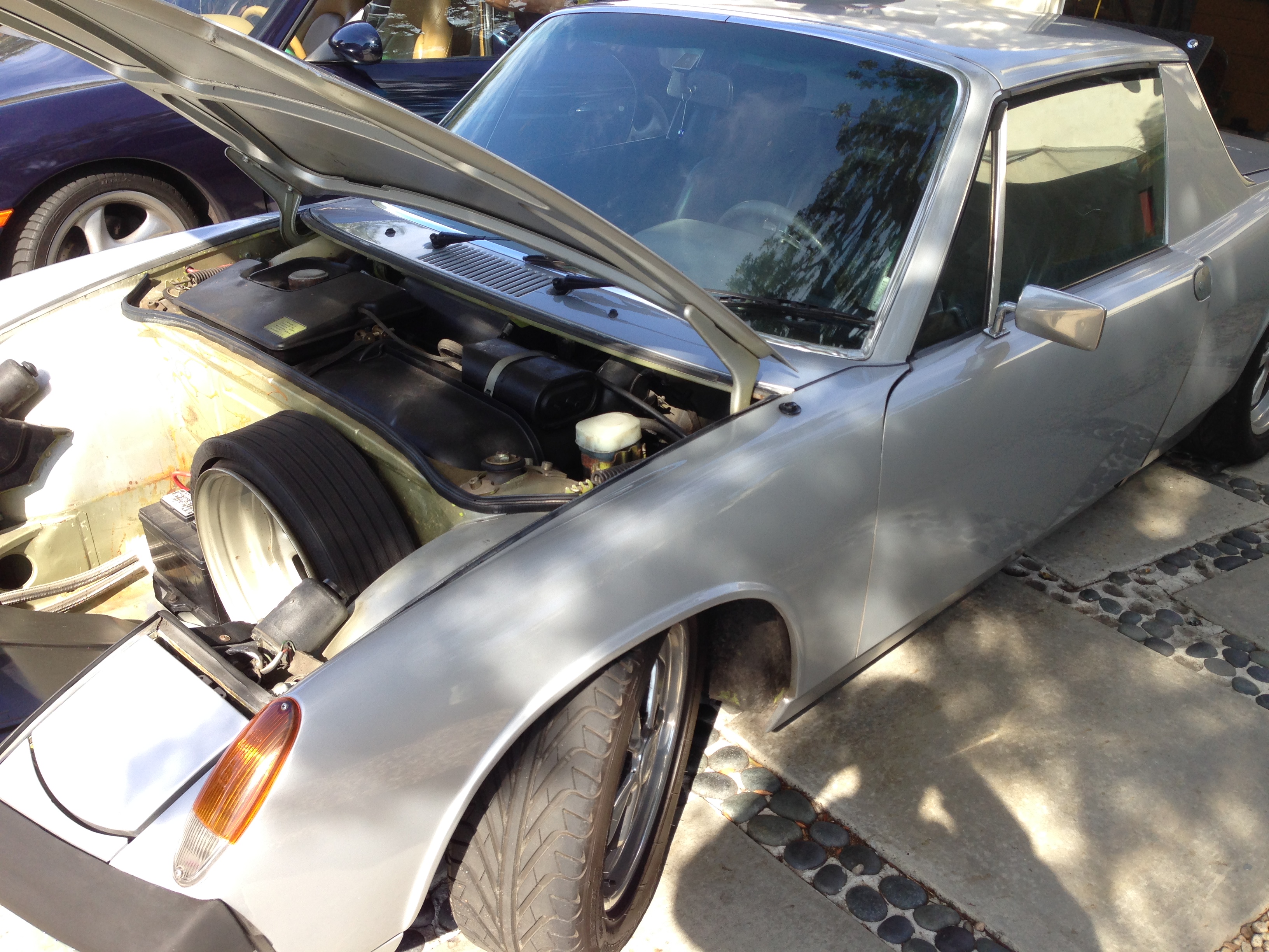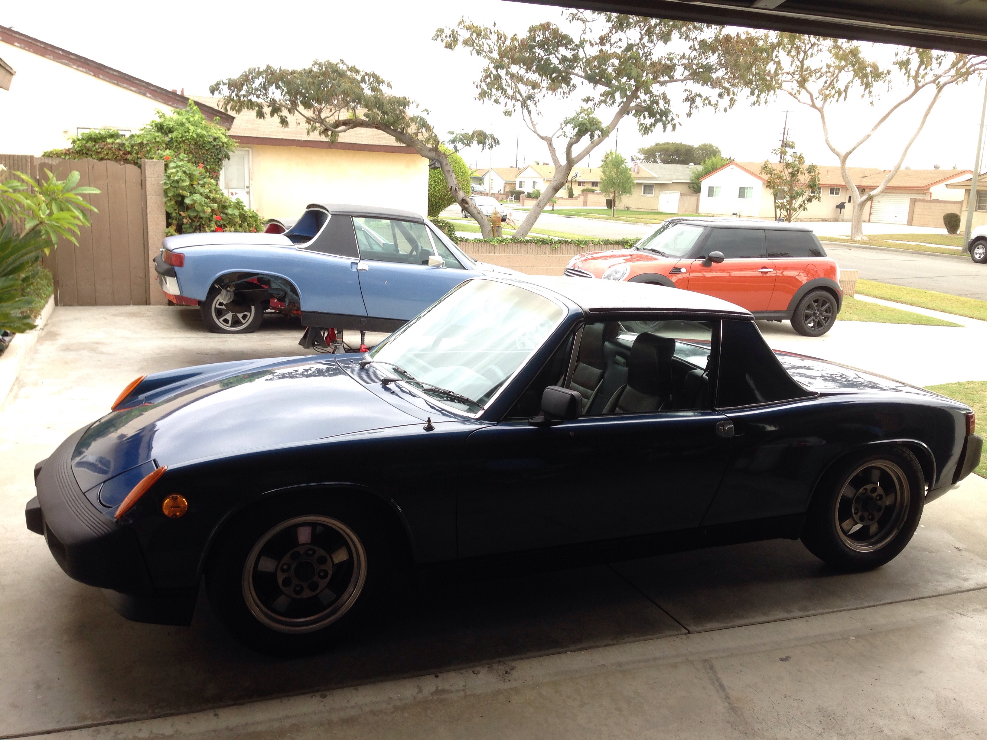 1973 914-6 conversion (87 911 engine) with 7x16 fuchs wheels and 205x55x16 tires 356 Porsche (running) Wife newer Porsche on the background |