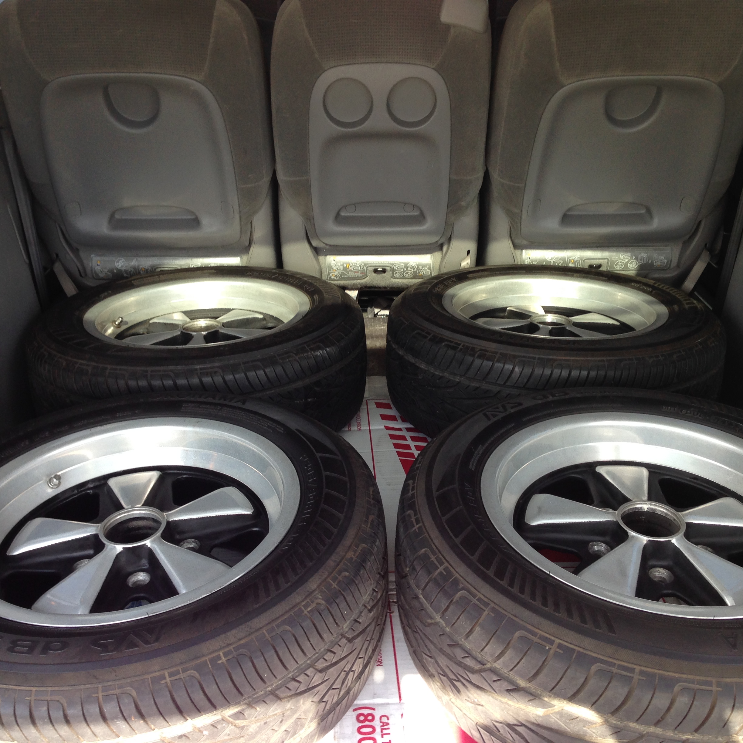 Drove my sienna this morning from Orange county to Palisades (pass Santa Monica close to Getty Museum) to pick up an after market fuchs wheels 7x15 with 205x60x15 Yokohama tires. What a nice guy whom I bought it and he has a collection of porches.