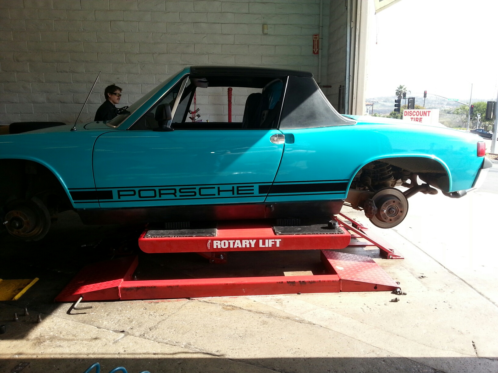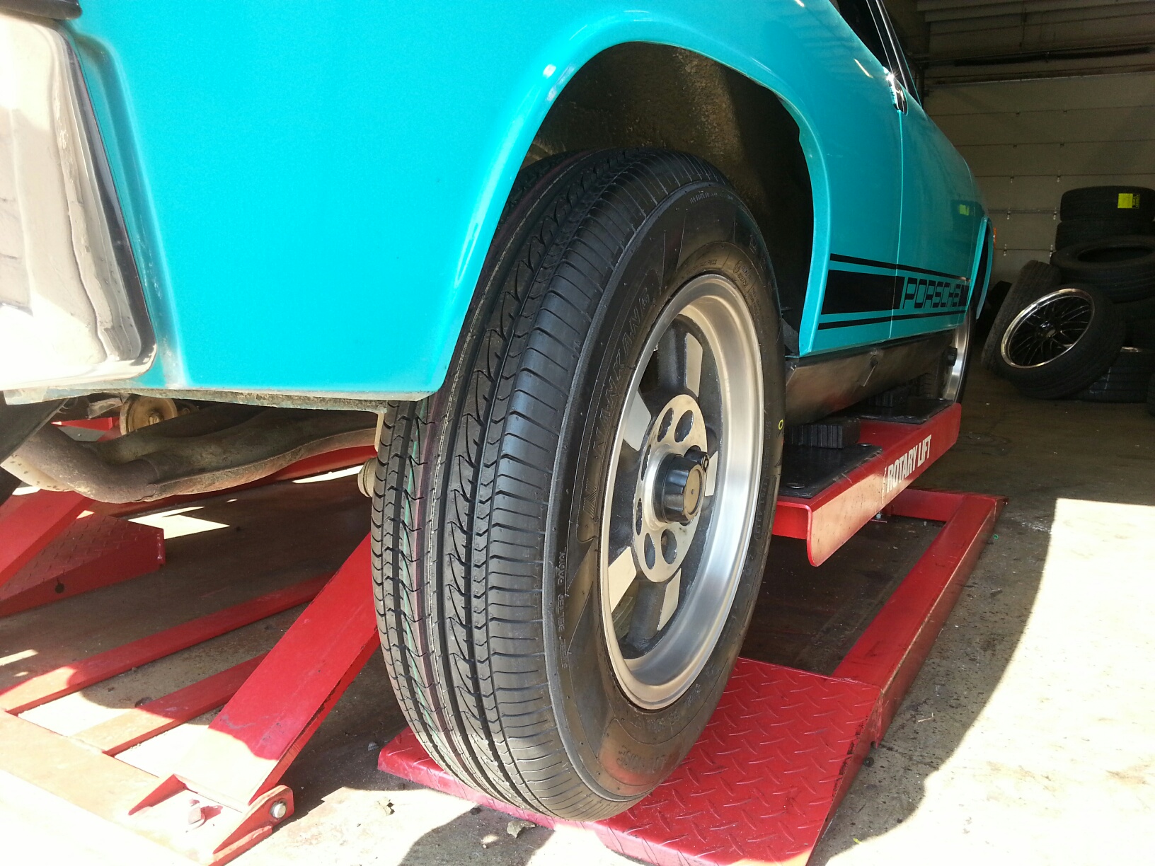 X6 polished Fuchs, rebuilt 914-6 front struts and five lug rear hubs. Haven't decided what tire size to use. I have this same setup on my red 74 using 225-50-16 tires but the fronts rub a little on the inside if the wheel is turn all the way. Attached thumbnail(s) Attached image(s)