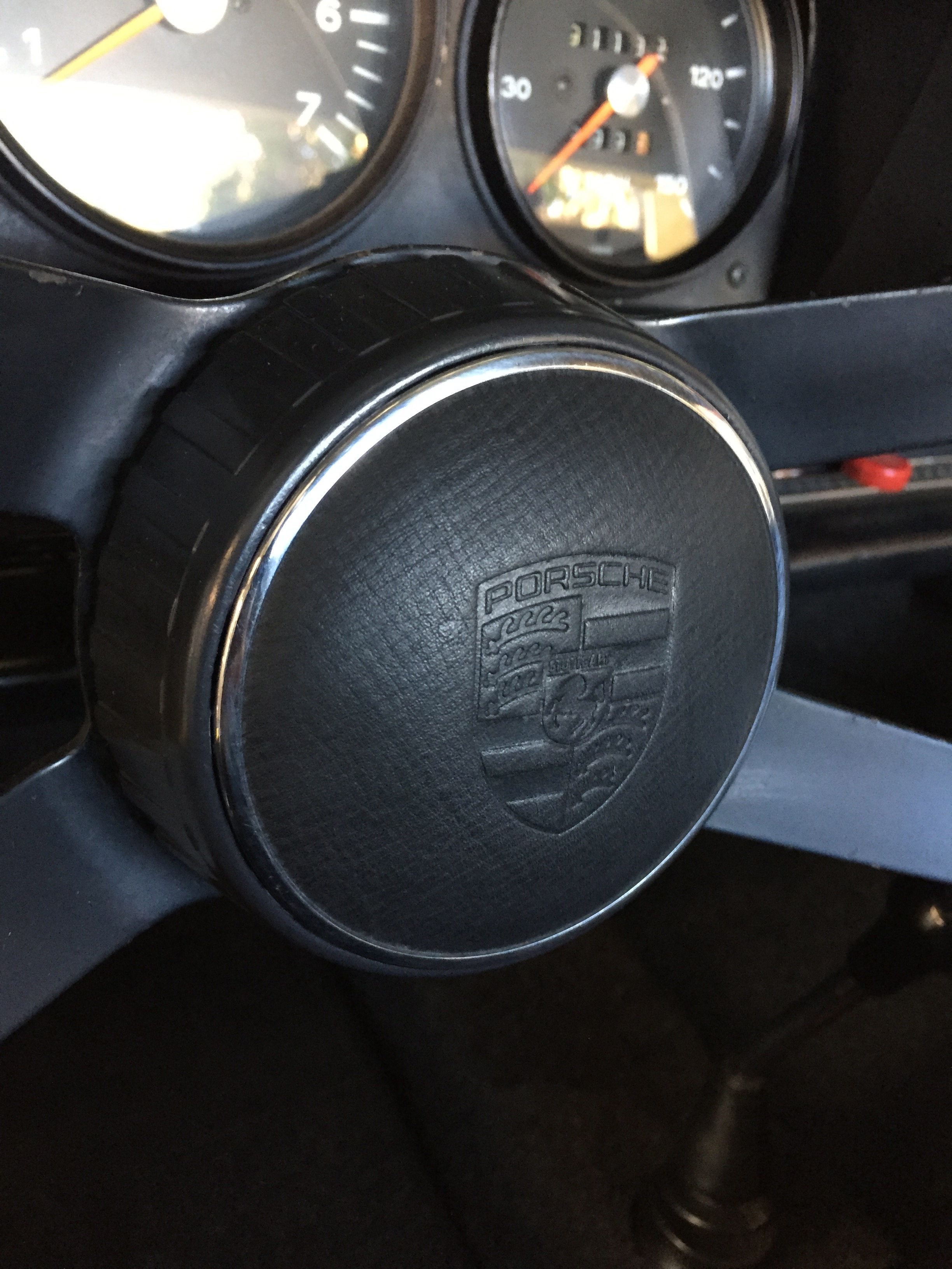hey Larmo: Why don't you go out to the front deck next time over, gaze at the Big Blue Pacific for a while...... - while I trade knob inserts with you - your eyesight is better than mine so my old faded, rubbed out ones will serve you just fine.............. the horn button look great / simple, clean and well crested.