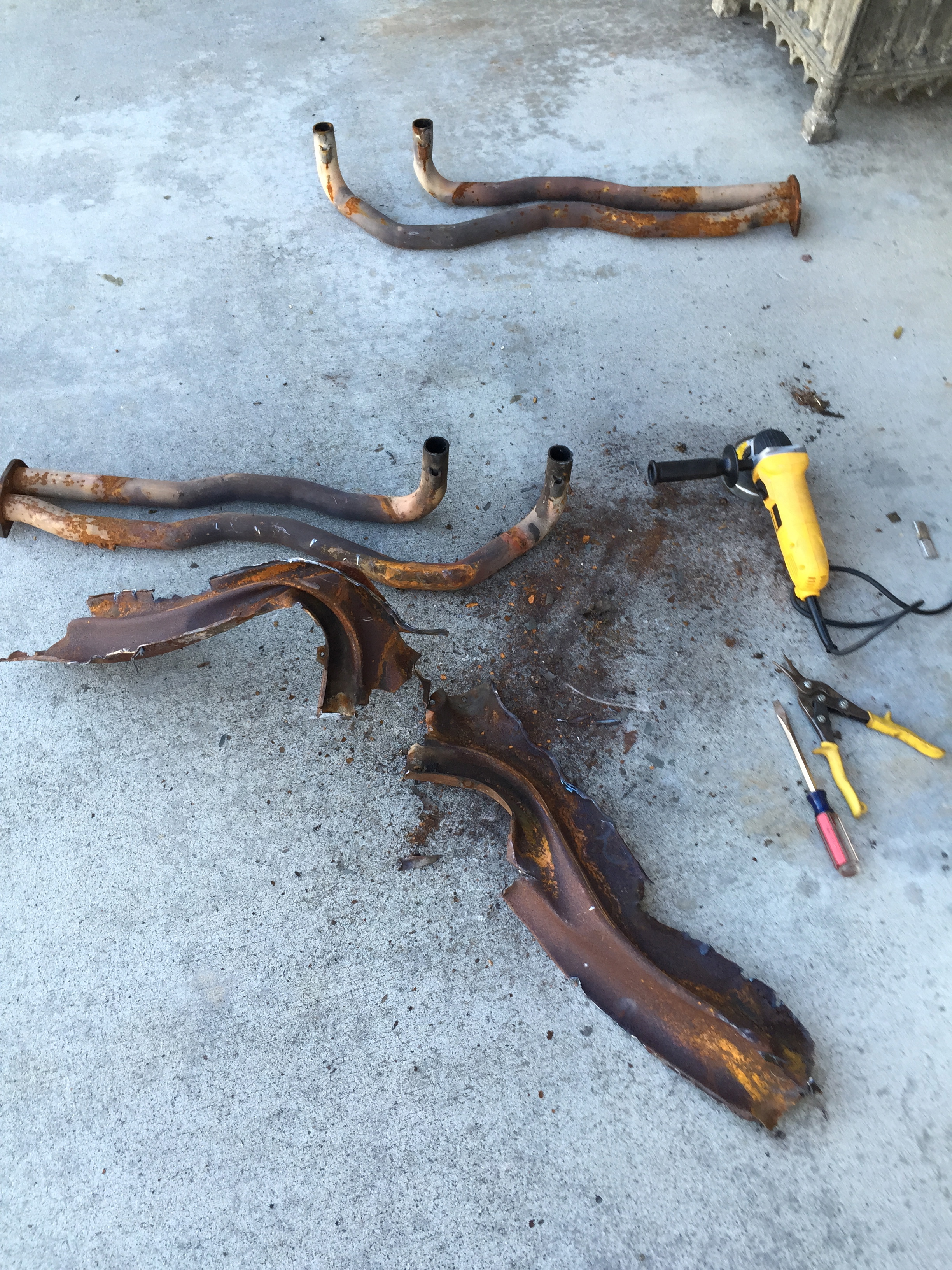 I've been acquiring parts for a little bit and I just found a clean roller. So, yesterday I removed the front suspension and rear suspension, built a dolly so I could move it around a little easier and scheduled my media blaster for Friday.