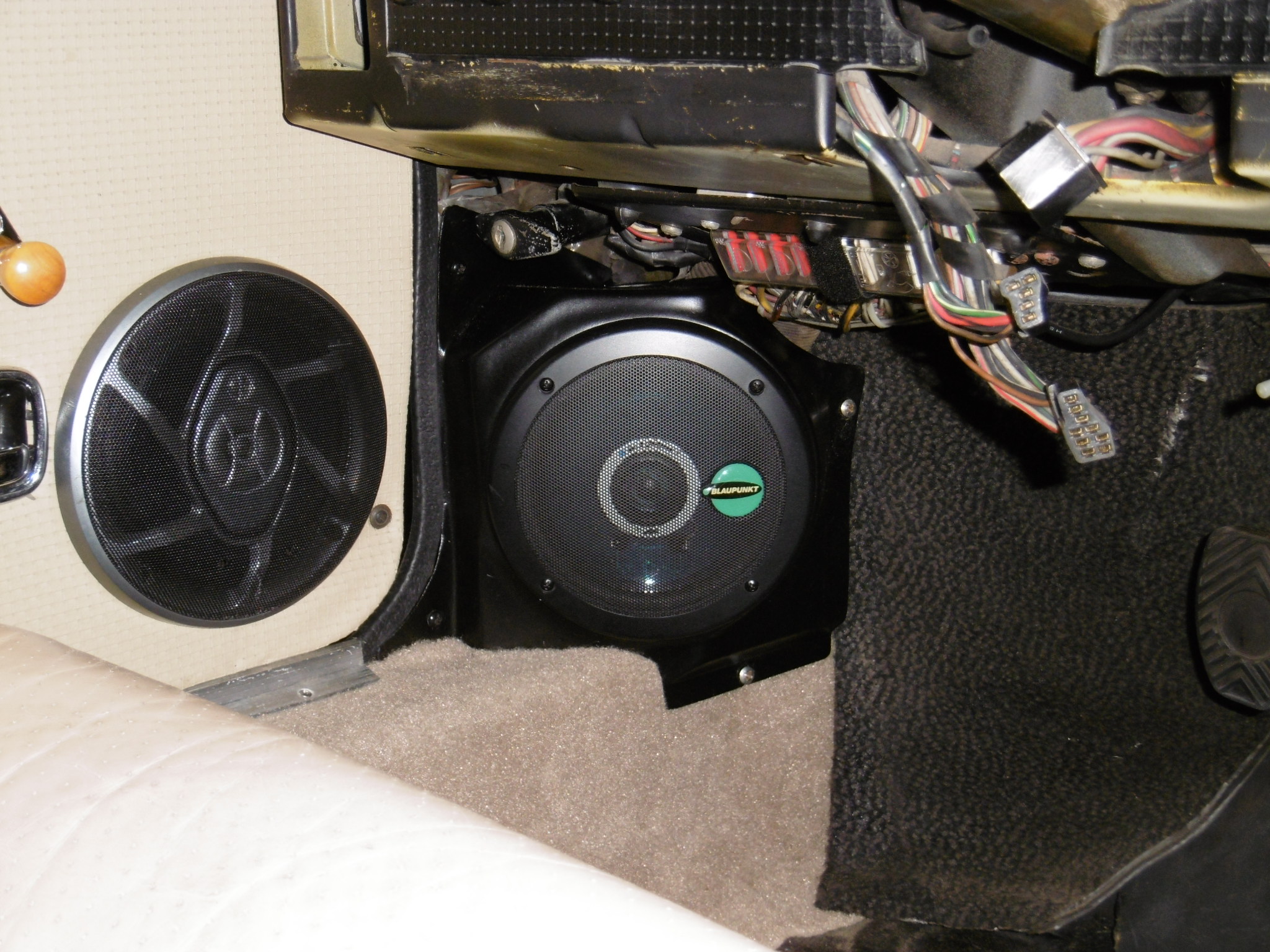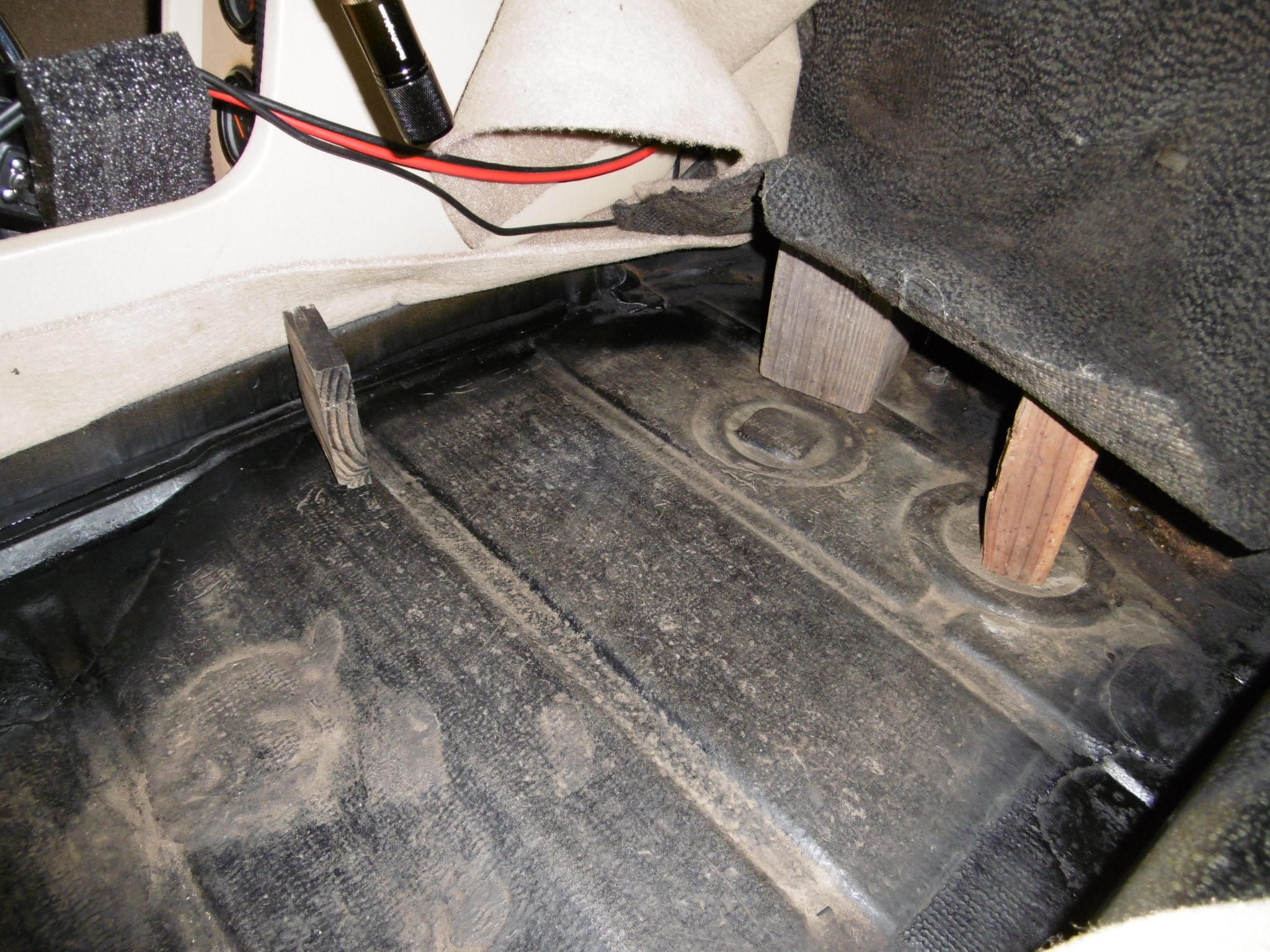 The turn signal/wiper stalk assembly doesn't fit in the housing (IMG:style_emoticons/default/headbang.gif) ... Apparently it's from an earlier car. Comparing it to the one I removed, the wiper portion on the replacement unit is thicker. It looks like I can swap out the thicker wiper unit for the thinner one though. Wired-up and mounted the driver's side Blaupunkt (IMG:style_emoticons/default/smile.gif) ... ... then moved over to do the passenger side - (IMG:style_emoticons/default/stromberg.gif) I felt wet carpet (IMG:style_emoticons/default/sad.gif) ... During the recent rain, we had a really nasty downpour for at least a good half hour, so apparently my targa-top seals aren't doing their job (IMG:style_emoticons/default/dry.gif) Pulled the carpets, wiped up the water, then decided to check for rust. Yep - a few spots around the perimeter. Removed some of the tar until good painted metal was exposed. Cleaned up, vacuumed and wiped down again, then hit the rust with Rustoleum Rust Reformer (IMG:style_emoticons/default/shades.gif) Came back an hour later and sprayed a second coat to catch what I missed the first time. I'll get the carpets back in and the other speaker in tomorrow ... then the steering column/switch housing & stalk, dash gauges and finally the steering wheel (IMG:style_emoticons/default/driving.gif) After that, I get to tackle the rocker panels ... (IMG:style_emoticons/default/popcorn[1].gif) |