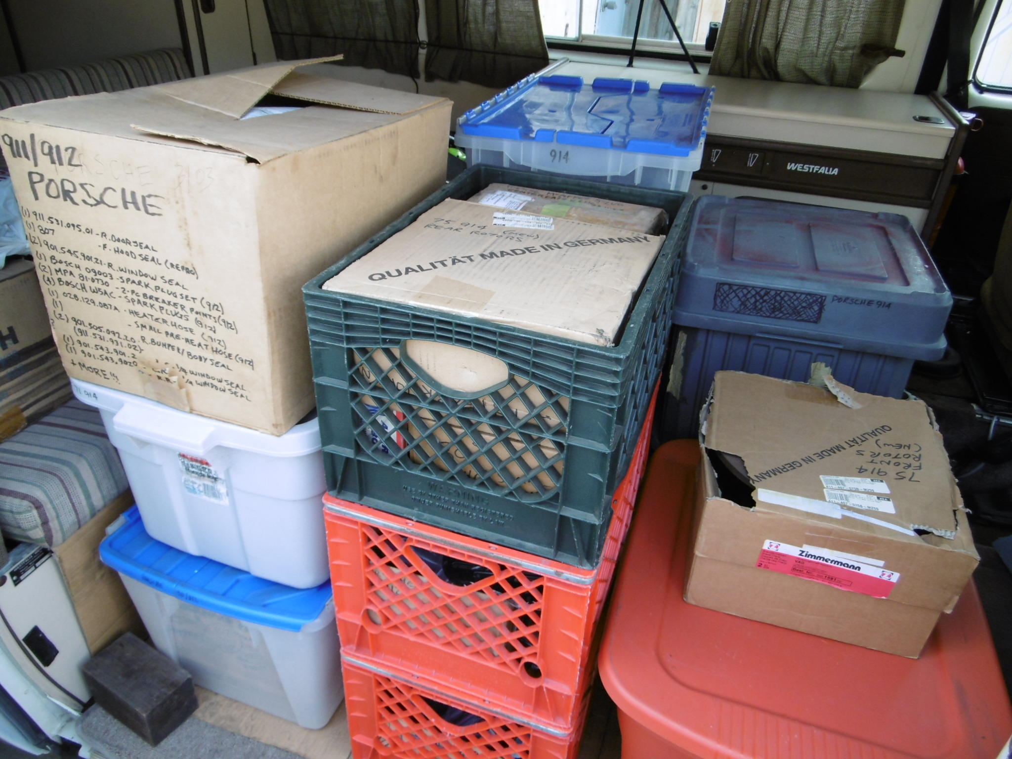 Went to the swap meet at the Phoenix Club in Anaheim. Wow, I bought some cool stuff and there were hundreds of beautiful Porsches of all types. The 914 contingency turned up about thirty cars. Speedy ran great and is a real trooper. Wished I could have made it. I woke up around 5 and my back was still bugging me, so I went back to bed (IMG:style_emoticons/default/yellowsleep[1].gif) I got up again around 10 and drove the 'BB' to get my 'late' morning coffee. Much later in the day and after medicating, I [carefully] loaded a bunch of boxes of car parts into the Vanagon. Most are parts for my wife's '71 restoration and "have no business sitting around the house" (at least that's what she said) (IMG:style_emoticons/default/laugh.gif) Going back in time, G e o r g e came by the shop on Friday to take the tour and pick up a seat. He also helped me loaded up a cherry-picker hoist to bring home. There's 4 engines that need to get over to the shop, (1) T4, (1) 901 and (2) 616s), and having the hoist here will allow me get them loaded up into the Vanagon easier. I can borrow a hoist from a neighboring shop to unload and hoist them up onto their respective engine stands (IMG:style_emoticons/default/smile.gif) Then the fun begins ... tearing them apart and/or reassembling them (IMG:style_emoticons/default/chowtime.gif) |