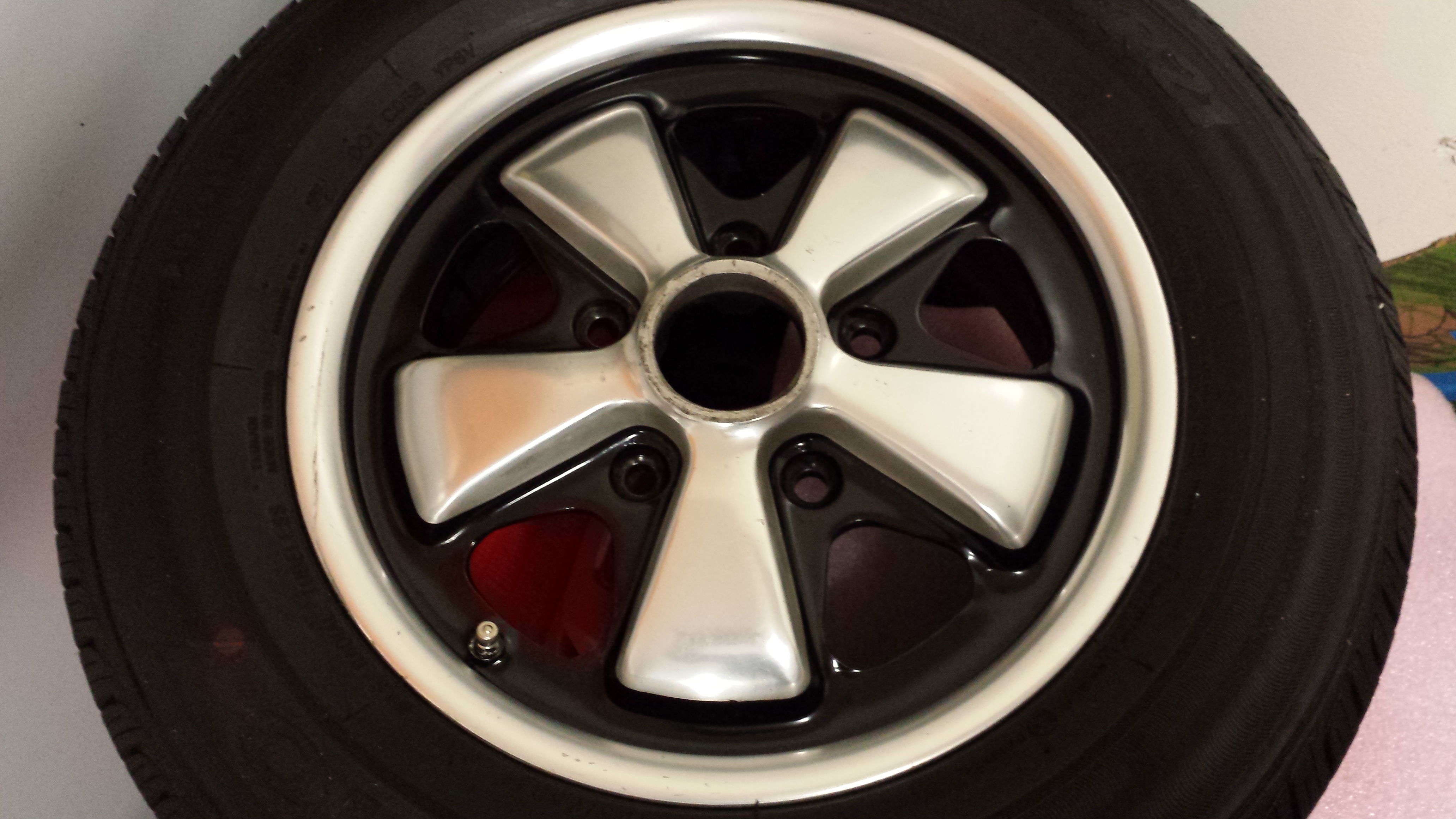 Painted another wheel today. Last one took forever to cure and harden so this one i thinned just a little and I added a curing agent, japan dryer. 2 down and 3 to go. I taped off the back holes, leveled the wheel over a basin and poured the paint in until it was up to the level of the original paint line. I will post more pictures after its dry . so after 6 days , these are still not dry, i have a feeling this will take a month for the enamel to fully cure. just too thick in the outside area - spraying will take longer to tape off but pouring them makes it too thick to dry fast. - the first one i did took over a month to cure and harden, but that is ty pical of an oil based enamel. i was hoping i could mount it before the cars and coffee next weekend but i dont think it will be ready. - btw as someone suggested, i did clean out the holes where the lug nuts seat so that they would be metal on metal (IMG:style_emoticons/default/smile.gif) they do look pretty good though! Attached thumbnail(s) |