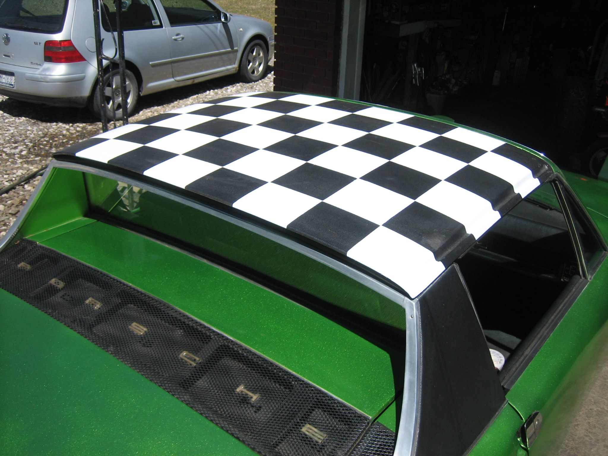 Took it out of winter hibernation and cleaned it up. I have a few extra tops so I painted one checkerd and tried it on. I probrobly wouldnt run it all the time but it looks good if the mood is right. Now iv got to figure out why its not charging