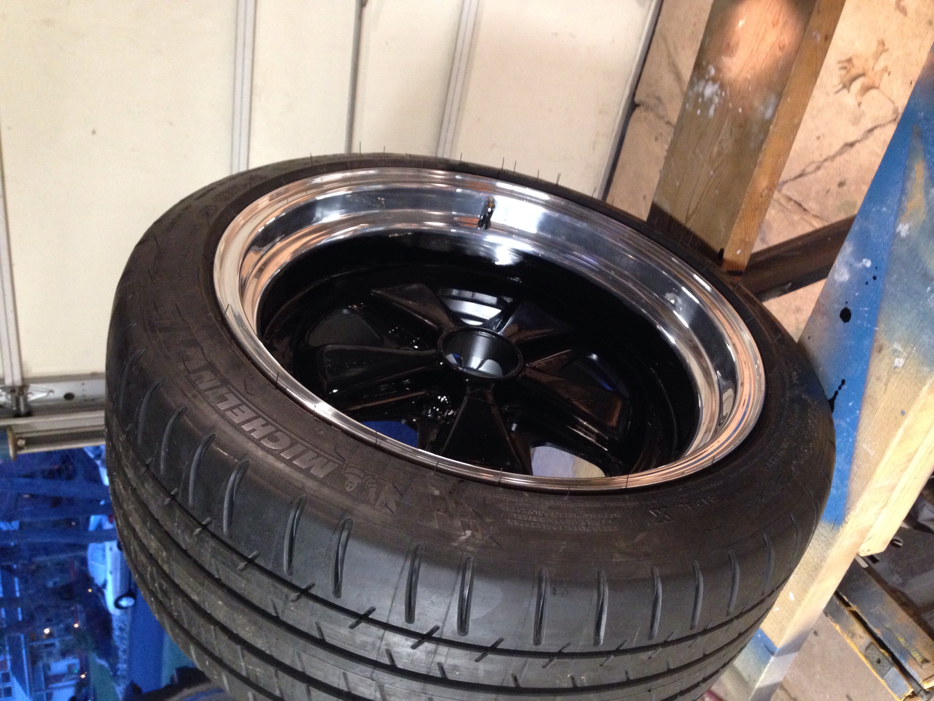 Last night at auto shop class, mounted and balanced a set of new tires onto a set of TRD wheels I recently picked up for the parts hauler.