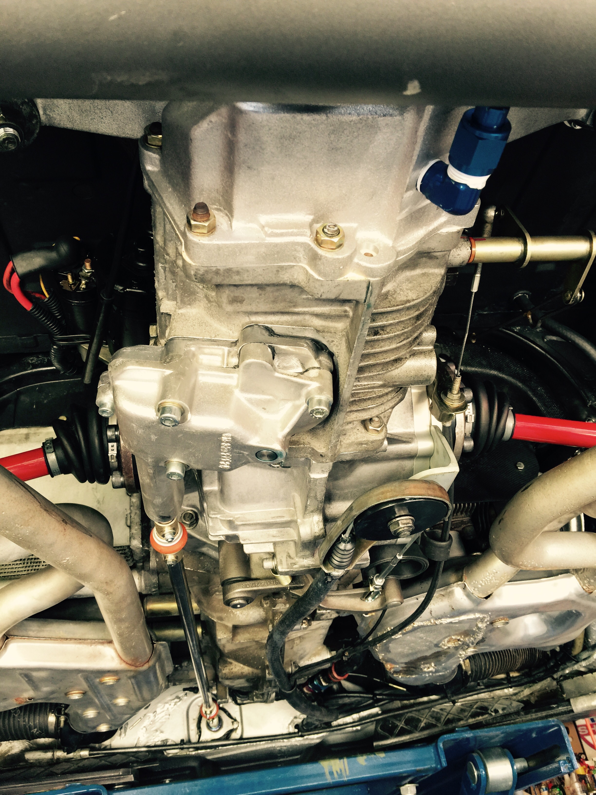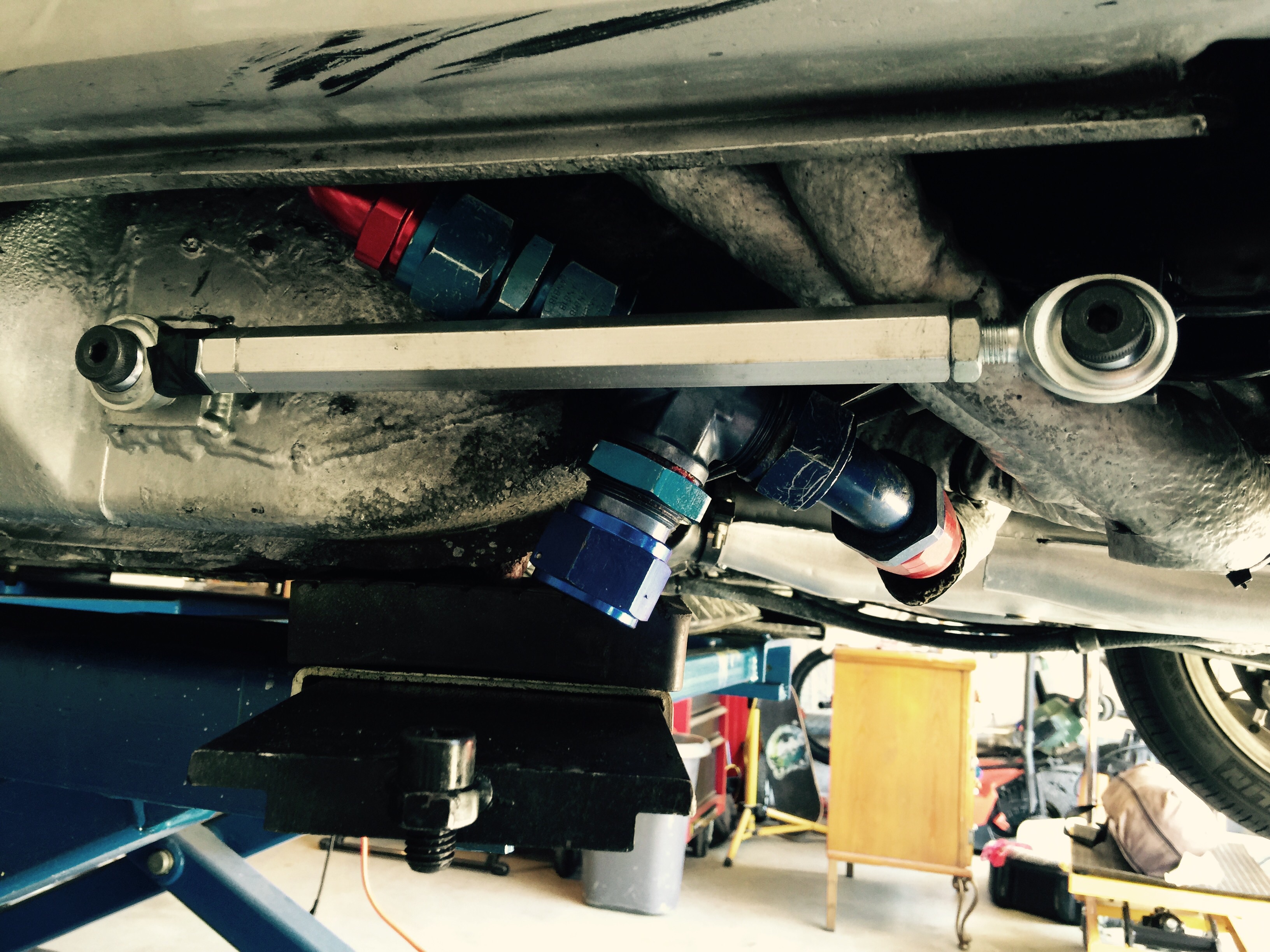 Removed & cleaned oil filter while I was down there. Unscrew oil filter and oil cooler sandwich adapter unscrewed with it. No big deal. Screw it back on, clean oil filter and reinstall. Strain & Filter slightly used ~4 quarts of Brad Penn and put back in engine. Crank engine & it starts immediately, get distracted fussing with carb return springs getting in my way. (engine putting like a tractor). Rev it once and see that I have NO OIL Pressure. Look down and see that I am standing in a puddle of oil. Fast forward ~2 hours after I drop car from jackstands, clean up my mess and put car back up on stands. Pinched the sandwich adapter plate gasket when reinstalling. Fixed sandwich adapter plate gasket, TORQUE adapter plate to 9.5 ft-lbs, Put in 3 NEW quarts of Brad penn and try again. THIS TIME I crank engine WITHOUT STARTING it and I can get my oil pressure up to 60 PSI with just the starter (IMG:style_emoticons/default/aktion035.gif) See that it is 11 PM and cant start the car. |