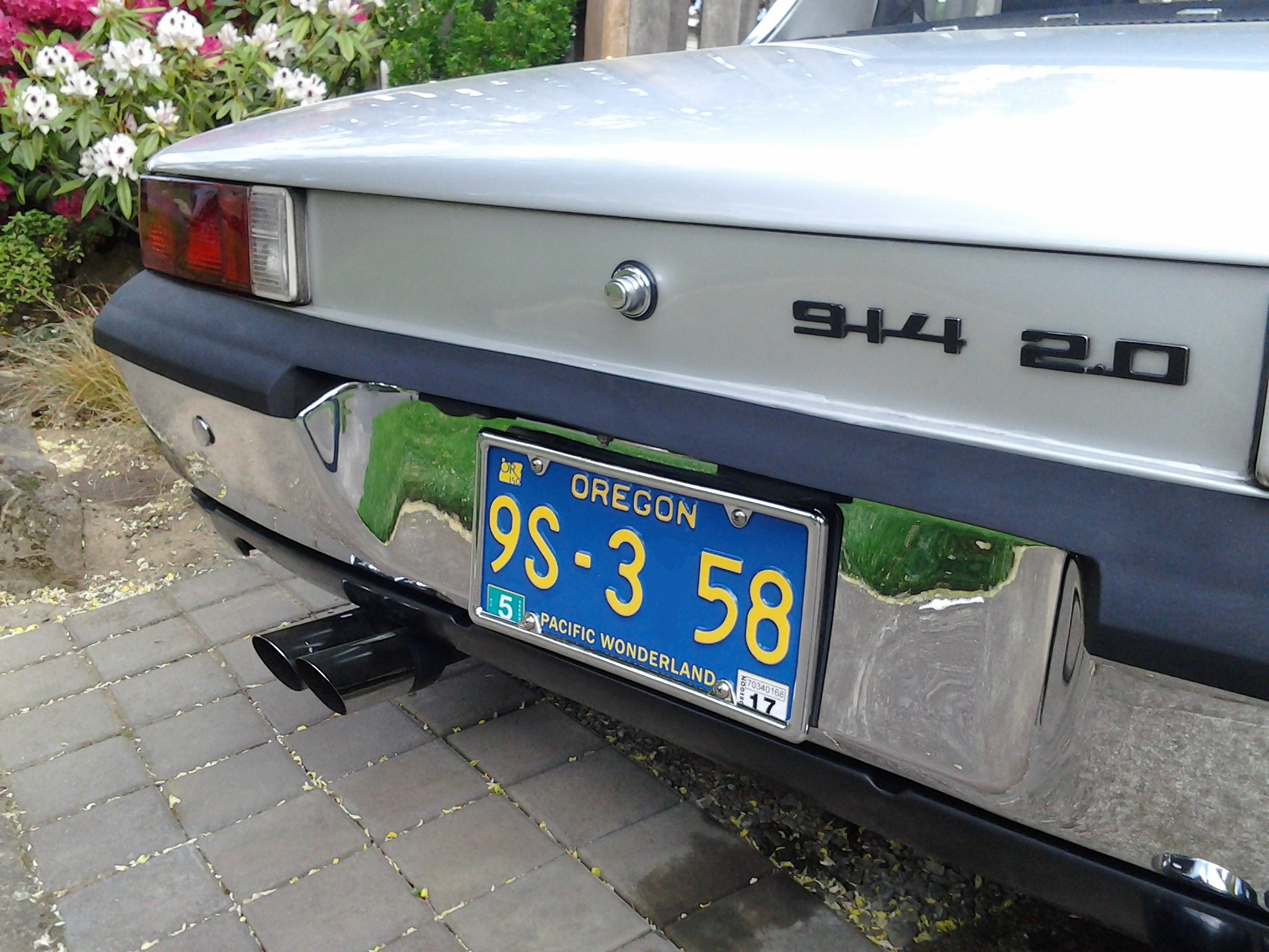 New bumper pad off a parts car. Pounded out some dents in my bumper with a rubber hammer and a rag. New classic style plates and tags. Picked up some frames at the FLAPS.