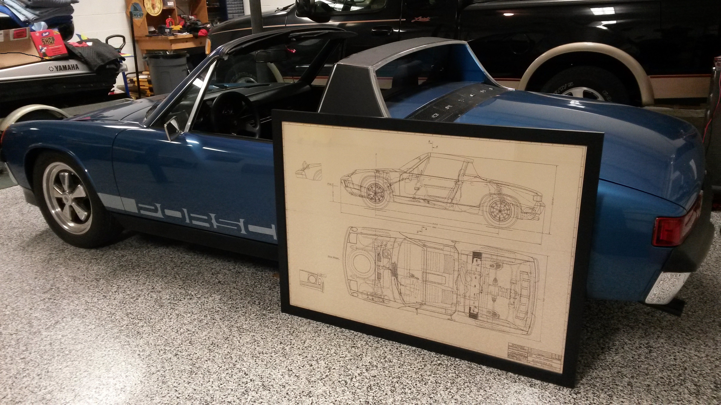 Now off of the jack stands, I played hookey from work on my birthday and went to my favorite restaurant for lunch, got a four wheel alignment then picked up my 914 blue print from the frame shop.