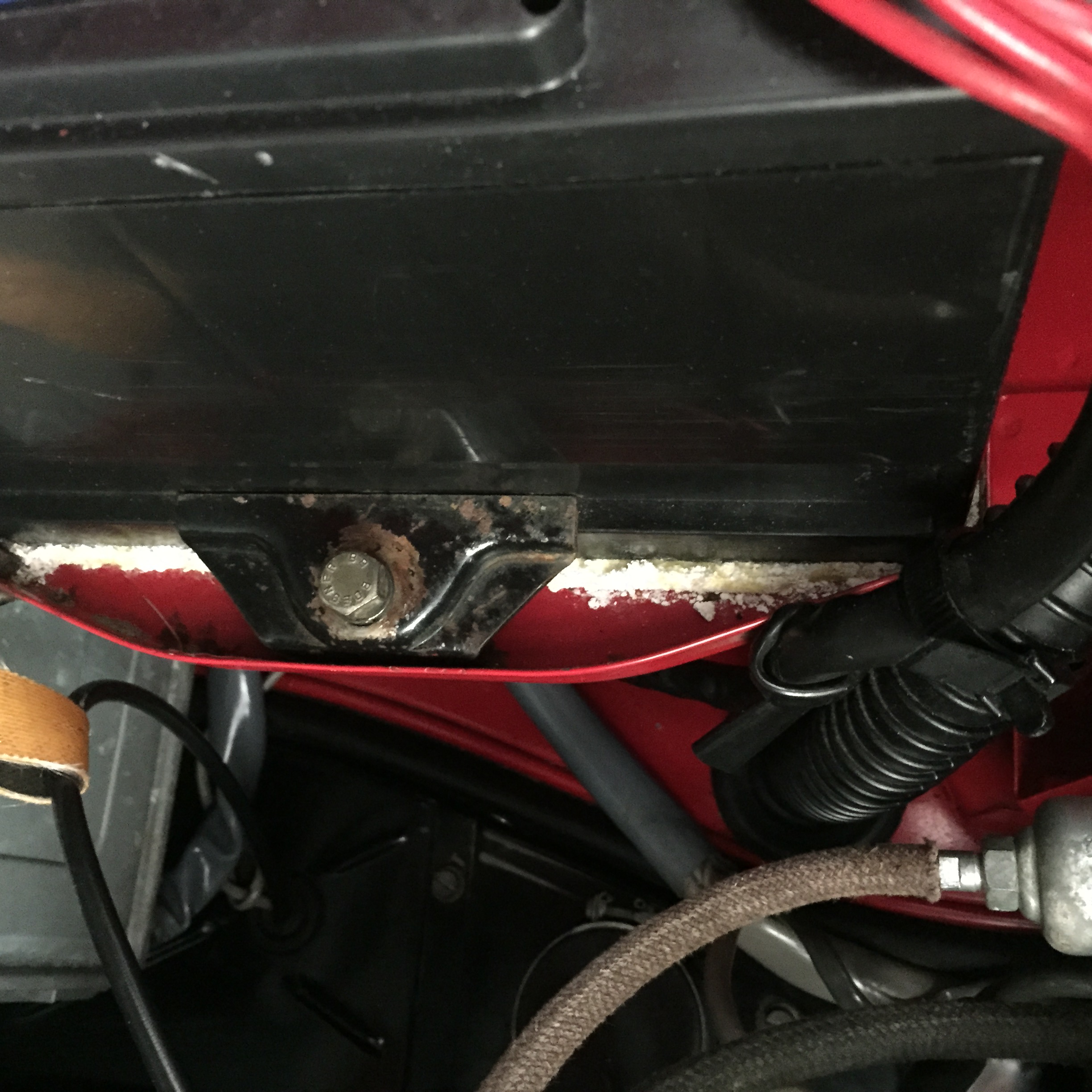 Decided to address the surface rust in the battery tray. Probably should have done a more careful job but at least this should take care of things for a while.