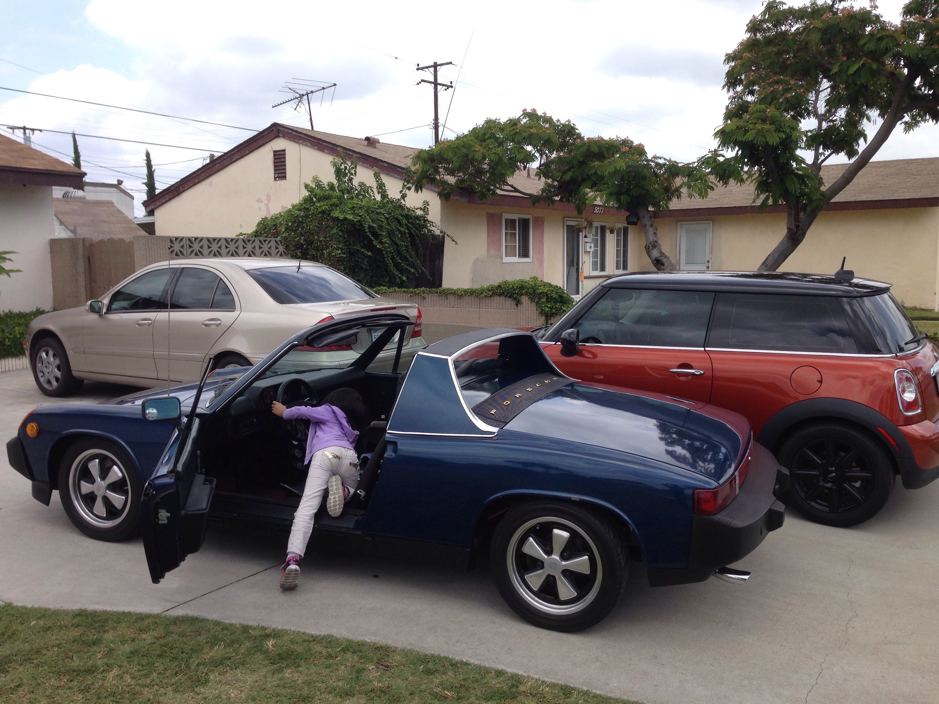 Going for a few errands and I asked my daughter what car to use, mom's Benz or sister's cooper. She answered dad's car! What color is that? It's a beautiful blue for sure. Enjoy your time with your daughter. Yes I do enjoy my time with my two daughters a 9 and 7 yrs. old. I'm actually 24/7 taking care of them since they were born. I was not able to work as an employee since we have the 1st child. Well the 75 1.8 914 I believed is a midnight blue, I got the car like that and even the previous owner is not sure what is the color code. That is why i can't repair some body paint since I dont have the color code. The car looks okay on a 20 feet distance. Thank you and God Bless! This is how it looks like from the previous owner's driveway. |