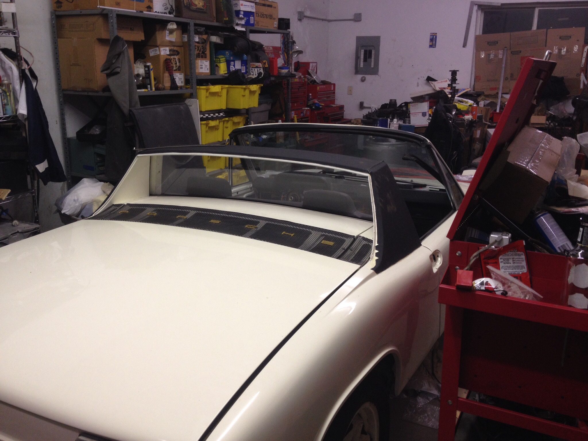 I was finally able to score an additional roof for my car last week. Yesterday I installed a bike rack and kayak rack. The roof still needs to be painted, and after the drive home with both racks full I see that I also need to add some bracing across the inside of the roof for the kayak. But here are the pics, I'm pretty happy with the way it turned out. Any yes, the kayak is longer that the 914. That looks great! Please update us on how it handles at speed. I had two of those racks for my 1998 Dodge Durango, and two years ago (18 yrs old car) at about 50 mph the roof cross bar that the racks attached to broke off. Both yaks went flying. So how much extra securing do you do for the targa top to stay on he car? |