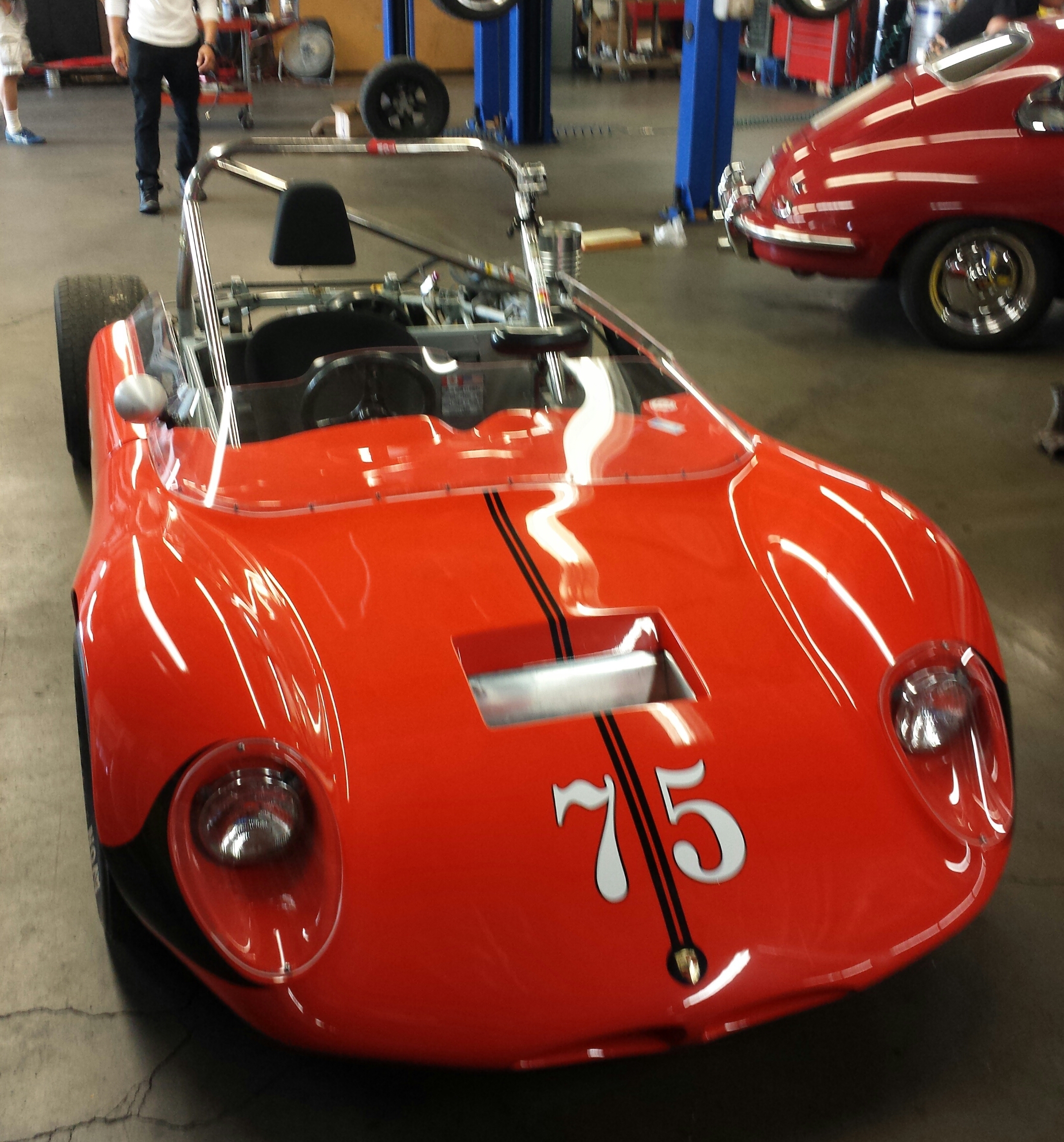 Took a small detour from the workshop, and went to Aase Motors to pick up the black 2.0. A rather rare mid engine 6 was there, 1964 Platypus #001. Weighing in less than 1,500 lbs. 200 hp , right hand drive. Originally driven by Scooter Patrick. The engineering and packaging in this tube frame Porsche is awesome.