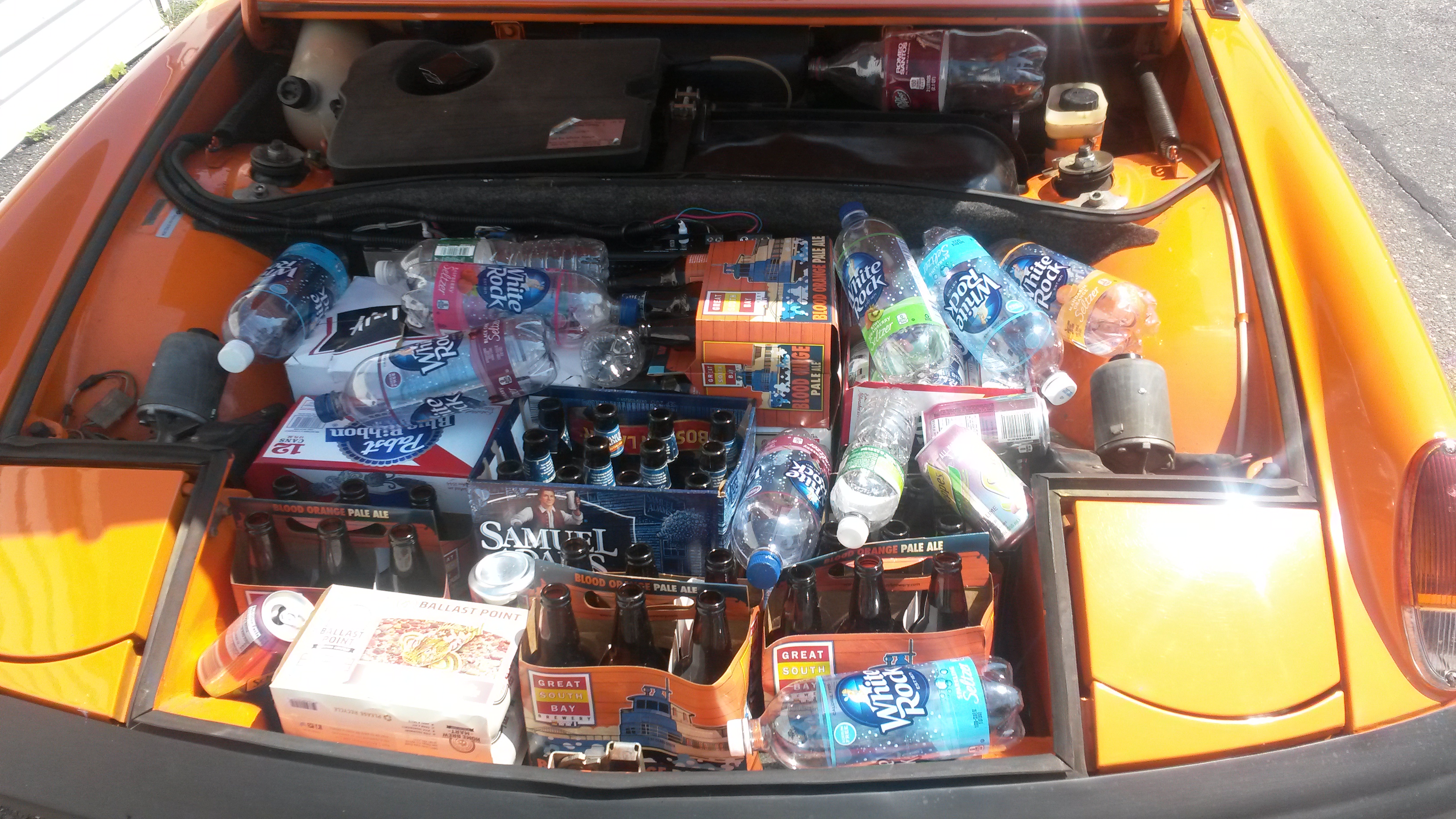 Drove it about 100 miles today on some great back roads. Then, brakes started feeling funky and the red dash brake light started flashing. Is that just brakes worn out, or is it the master cylinder? Brakes:Also, the rear trunk solenoid stopped working, so I can't get the rear trunk open. Check fluid level in the reservoir. If it's low, check for leaks going to the feed side and the hard lines going out of the the M/C - also check all the calipers and the proportioning valve at the rear firewall. If no leaks are evident, check the condition of your pads. Rear trunk: Check for a blown or missing fuse Brake fluid was low. Topped it up, no improvements. No sign of leaks. Pads worn down, and rotors are scored, so will get this taken care of before I drive it anymore. No blown fuses. The trunk solenoid worked fine in the morning. Put the top in. Then when I got home, it would no longer work, so can't get the trunk open. Suggestions? Do you hear any clicking when you push the release button? My trunk would not open when I pushed the button, but if somebody pulled on the trunk when I was pushing the button (located under the dash) it would open. I think the spring was no longer strong enough to fully pop it open. Once I got it open, I did not want to be held hostage, so I took off the spring and latch, and now it is permanently unlockable. I might fix it when I get a new rear trunk lid that does not have a spoiler, but then I might also remove the Porsche reflector and go with the completely stock trunk lock. Nope, no clicking at all. When it works, it's easy to hear it actuate. Totally dead. |