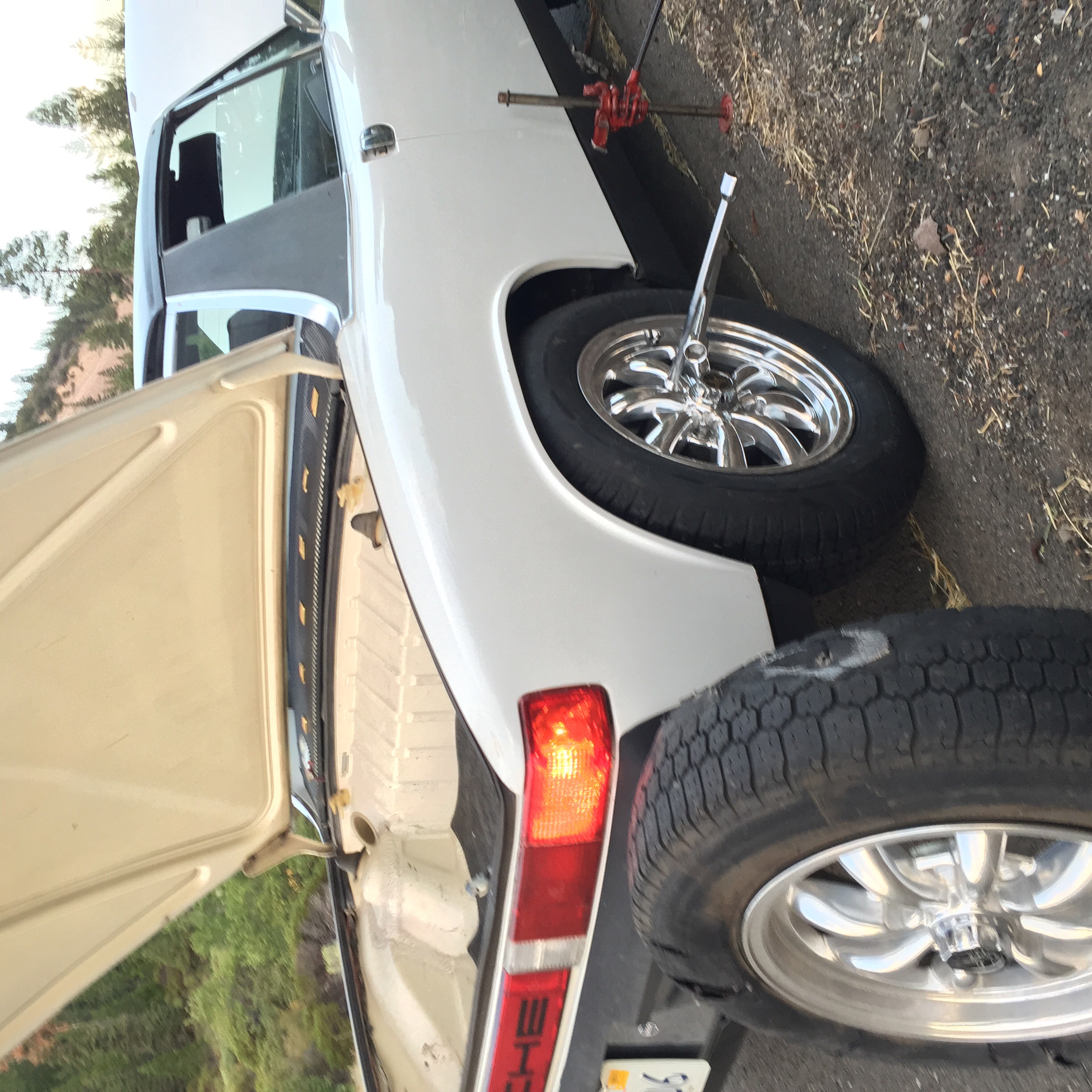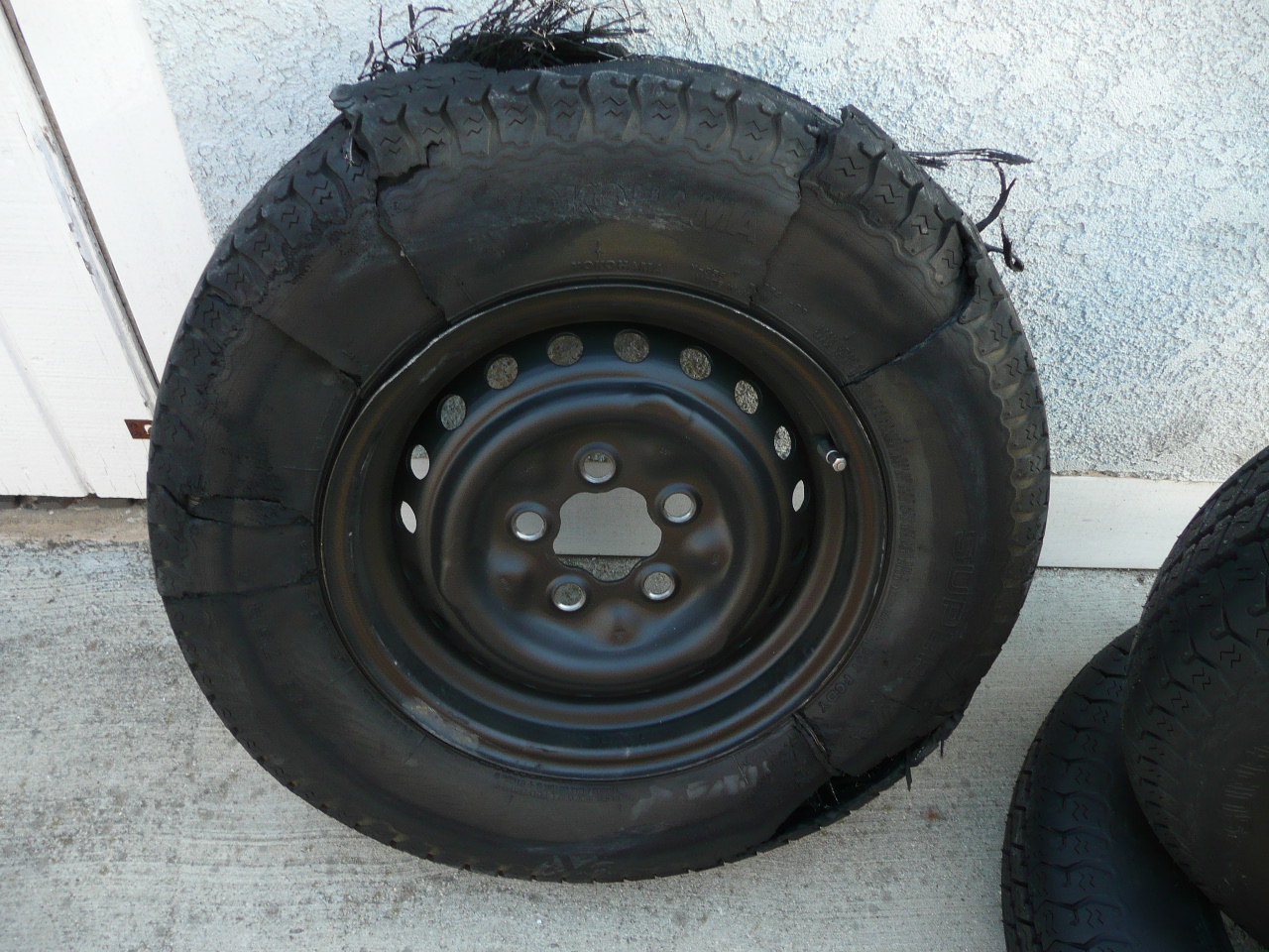 A few days ago, southbound on I5 just past Weed, CA (motto: I Love Weed!) my car starts to get buffeted by a semi I was passing. Then it started to slow down big time, losing speed and rpm's. After a few hundred yards (seconds at hwy speed) I pull over to have a look. Tire blowout but I did not hear or feel anything, even with the top off. Maybe the earbuds with Bob's "Punky Reggae Party" was too loud.