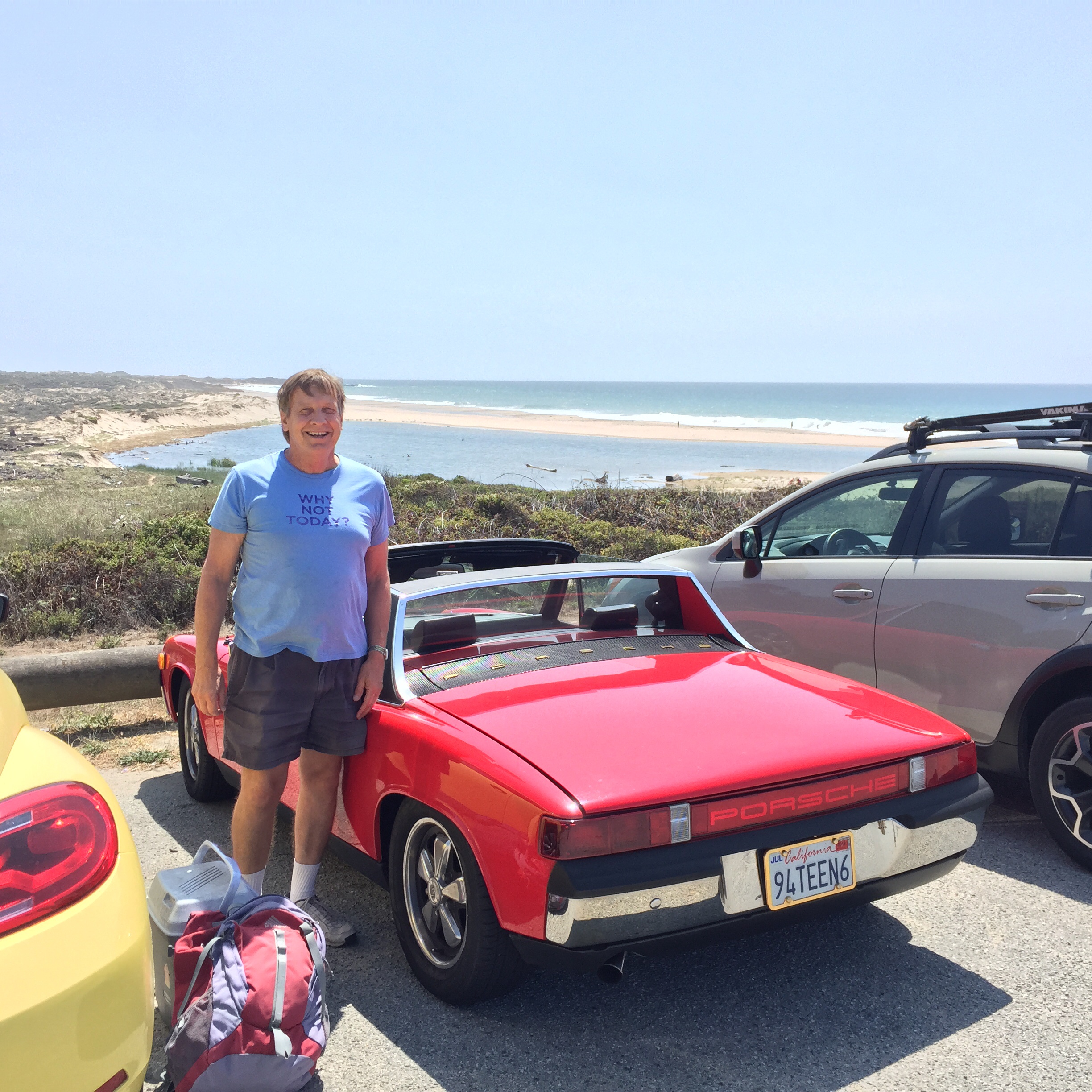 QUOTE Life's a beach.. But then a red 914-6 shows up on my tail... So I follow him to his favorite beach hangout, and I meet George. His is a 1970 that he has had for 30 years that was originally orange, now red. He upgraded to a 1973 2.4L six. Not a member here, but I told him to check us out. I also saw a black 914 northbound on HWY1 around 3pm, but I passed by Alice's around 4:30pm, which was too early for dinner. Nice day for a Sunday (IMG:style_emoticons/default/driving.gif) Always great to meet another owner when out and about. Awesome story. |