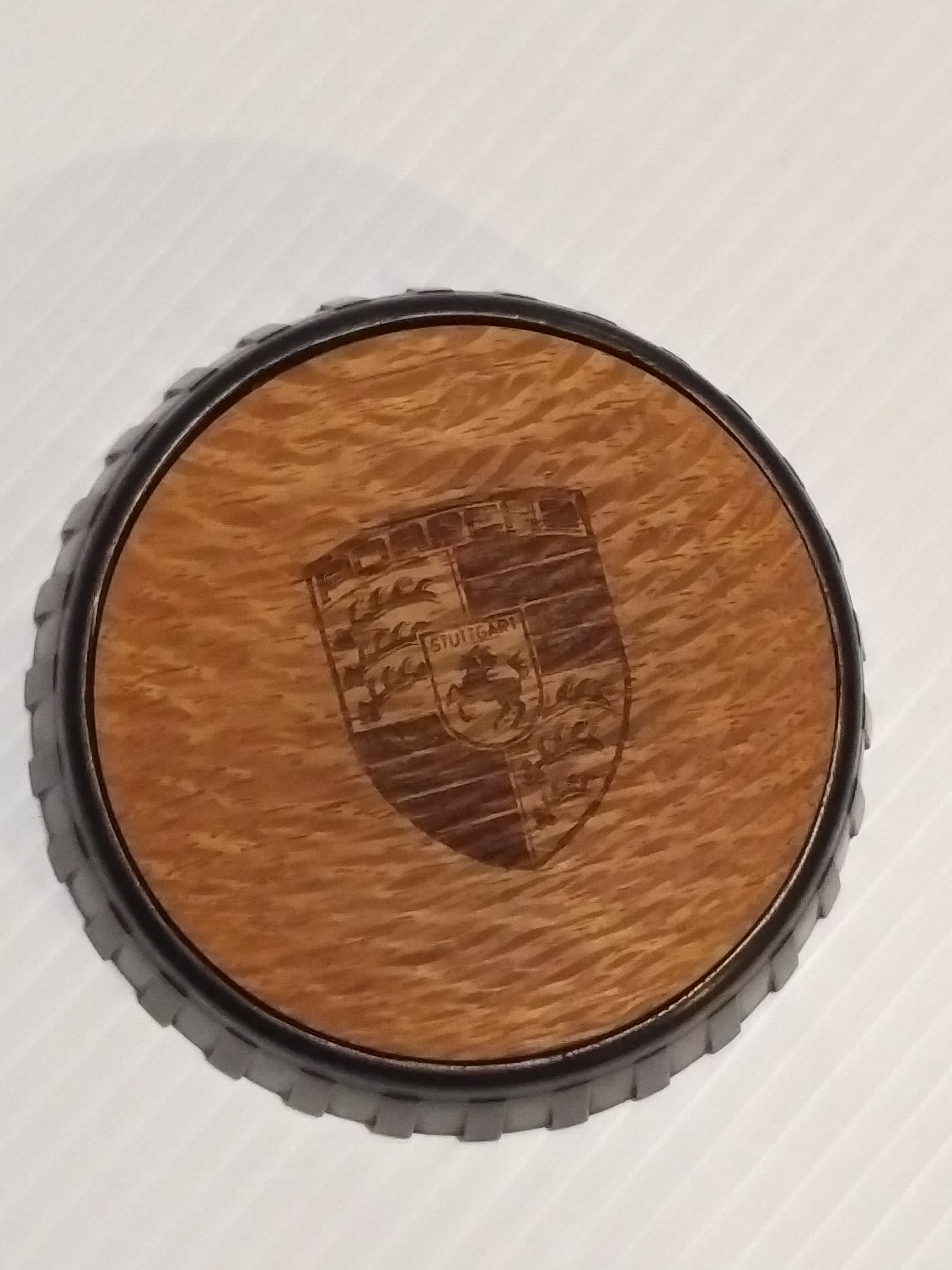 Working on making a horn button...had a buddy turn a domed wood disc, which is in a 914rubber.com button...and laser engraved the logo. The rest of the wheel still needs some refurbishing before it's all done...but that's what winter is for! Very cool one of a kind horn button. I love the grain of the wood! |
