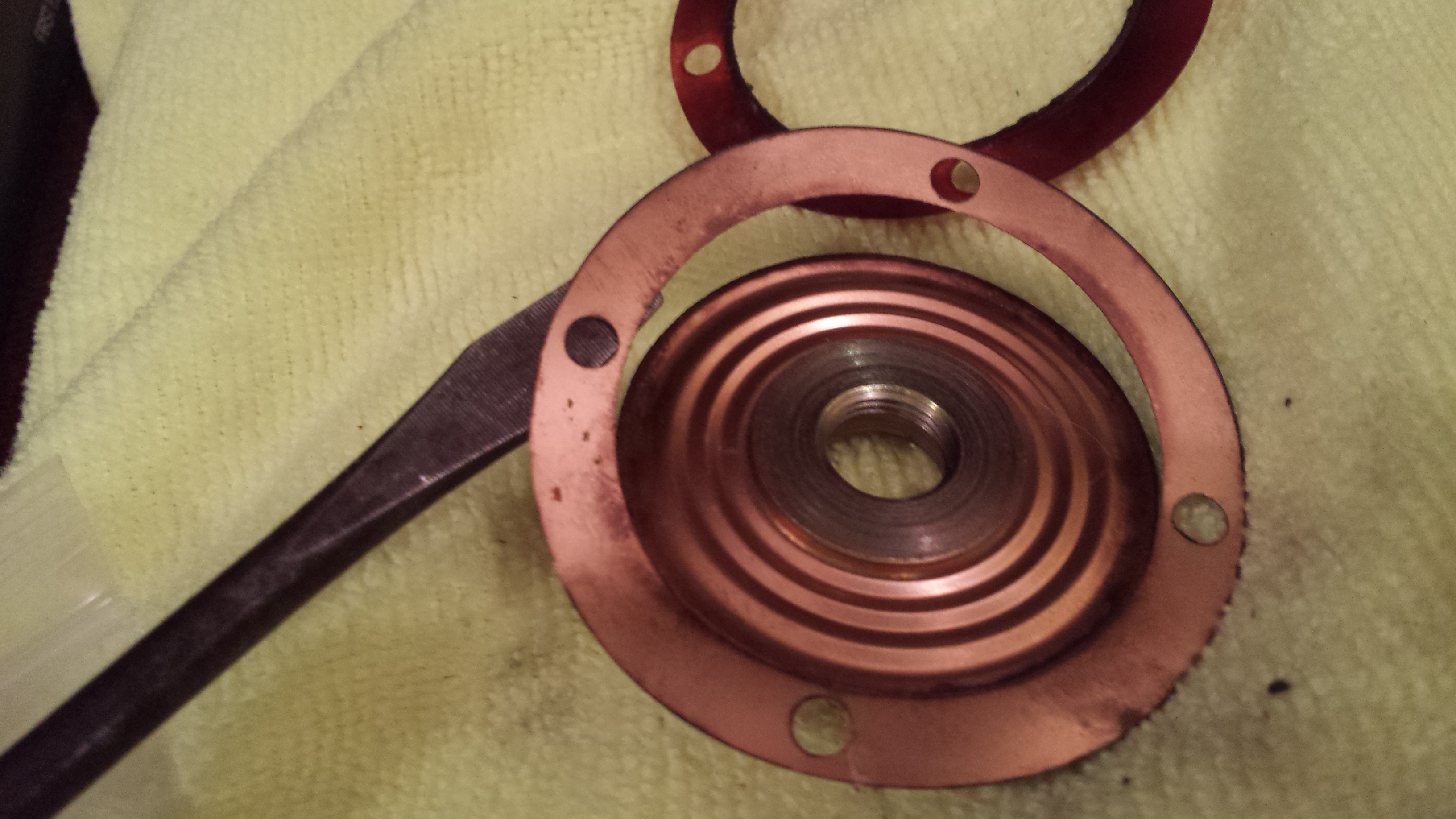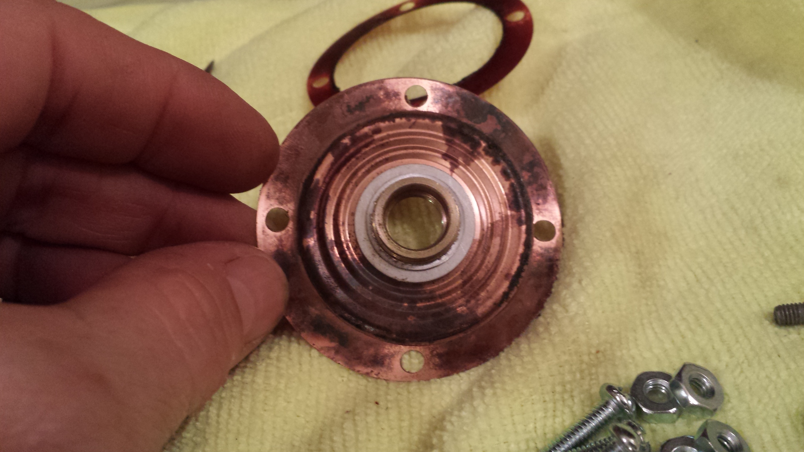 But second one was not holding vac, had never been opened, so the rivets were removed and the diaphragm was torn, so it got a new seals, paper gasket and diaphragm. Now holds vac! Tests out o.k. electronically so it will get road tested to.orrow. the epoxy seal was not touched, and I left it alone, so that the depth of the inner screw would be the same. Thanks to Chris Foley for producing these!. One thing, the one with a good diaphragm had been tampered with by a p.o. the inner screw was turned quite a ways out or counter clockwise, and I measured the depth it had been set was about 3 turns further out than the one that was untouched. So no wonder it would not work for us.for anyone who has messed with one of these you know that even a quarter turn will make a huge difference., so this was way off I hope now it's close enough that I can make a minor adjustment and get it set back to where it should be. My Attached thumbnail(s) |