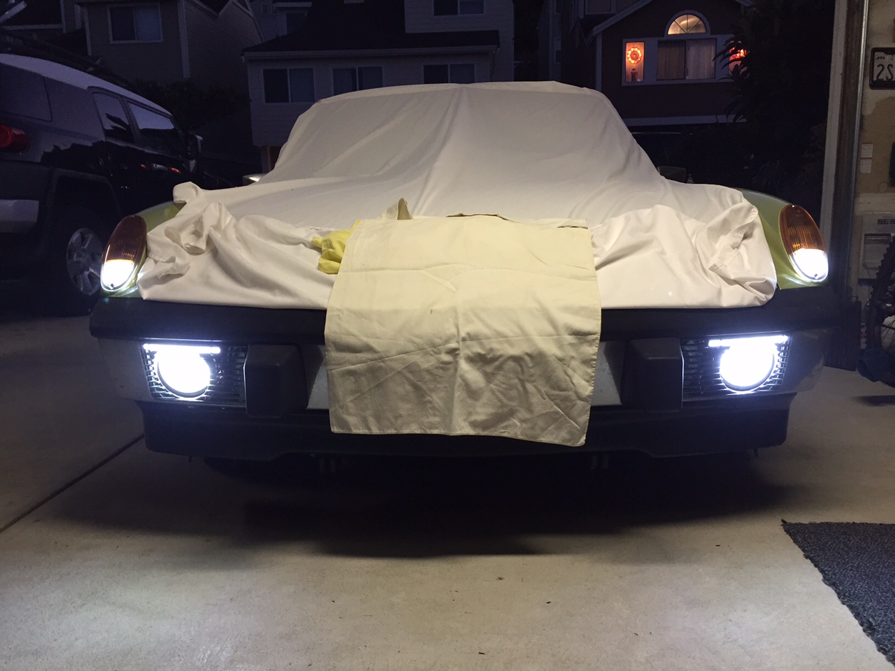 I attached a pair of inexpensive light bars to the top of the fog light grilles with zip ties here is the eBay product purchased: http://www.ebay.com/itm/171961642045?_trks...K%3AMEBIDX%3AIT this is an update of my previous mod where I changed out the interior compoents of the OE fog light bulbs to LEDs. (here is that old link) http://www.914world.com/bbs2/index.php?showtopic=230504 During daylight hours, top pic shows what drivers see in their rear view bottom pic show what drivers see in their rear view if I switch on the fog lights Hmmmmm. Remove the fogs, multiple strips to match the grill pattern. Look cool? That sound appealing. I did buy another pair, as spares, so I will try that out. It will blaze at night, but in daytime they do look cheesy. |