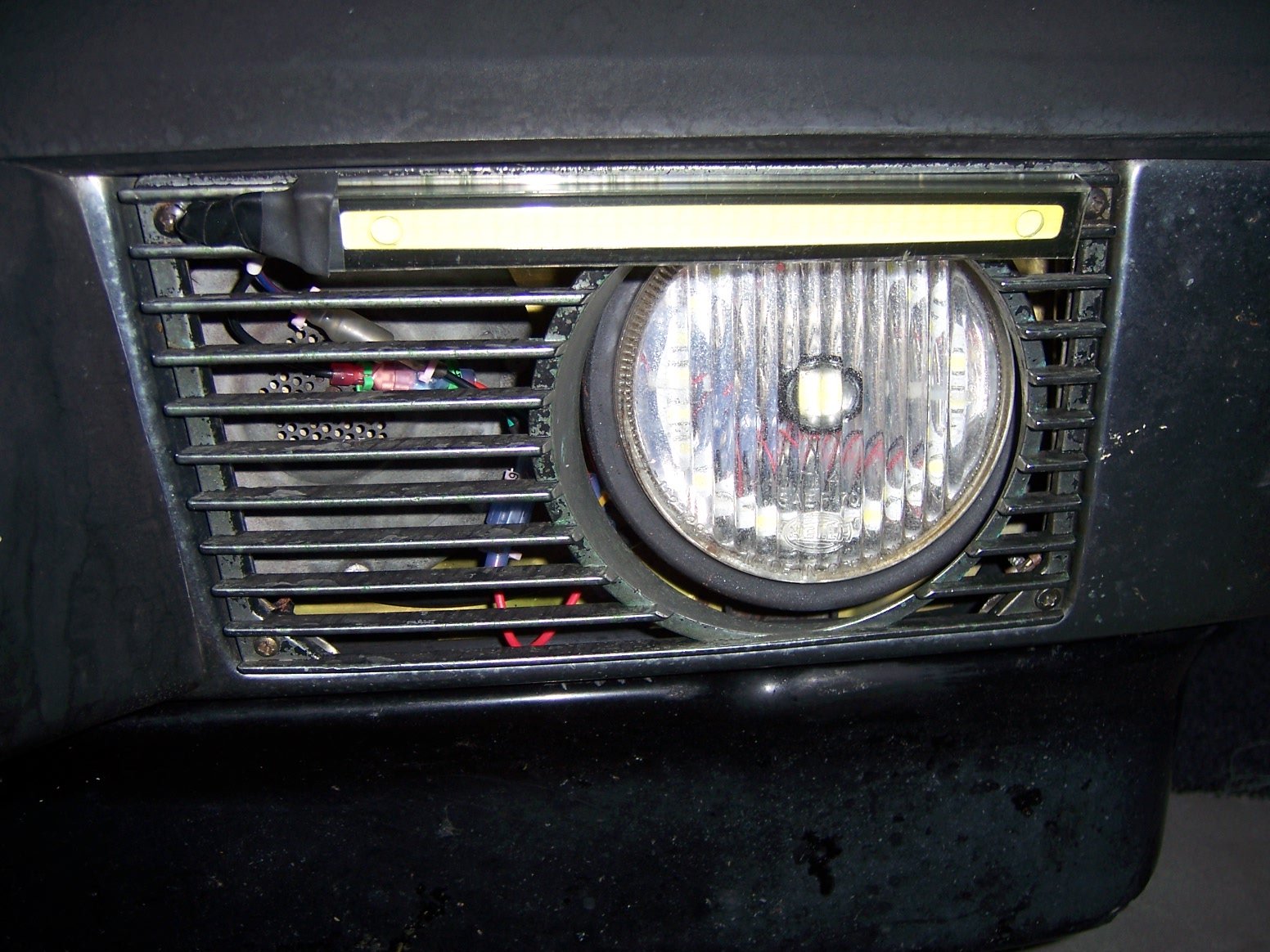 I attached a pair of inexpensive light bars to the top of the fog light grilles with zip ties here is the eBay product purchased: http://www.ebay.com/itm/171961642045?_trks...K%3AMEBIDX%3AIT this is an update of my previous mod where I changed out the interior compoents of the OE fog light bulbs to LEDs. (here is that old link) http://www.914world.com/bbs2/index.php?showtopic=230504 During daylight hours, top pic shows what drivers see in their rear view bottom pic show what drivers see in their rear view if I switch on the fog lights Hmmmmm. Remove the fogs, multiple strips to match the grill pattern. Look cool? |