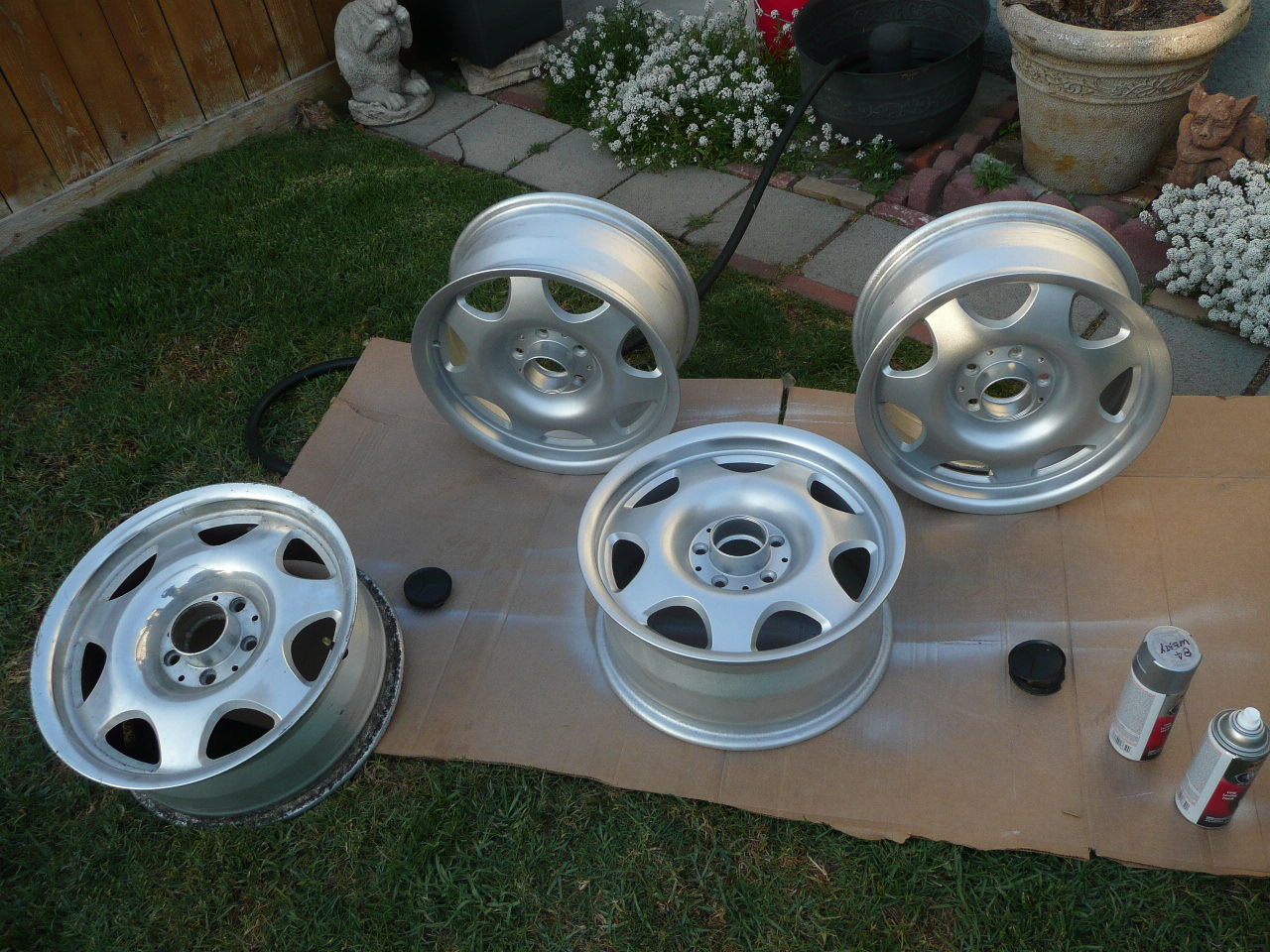 Also received some other 914 parts recently that I've only been able to store on the shelves. I finally finished sanding, cleaning and painting the 4th MBZ CLK forged alloy wheel on Monday. (I painted the other 3 wheels a year ago) (IMG:style_emoticons/default/blink.gif) Mounted and balanced a set of Yokahama Geolander (215/65-16) tires on them last night. (These are for 'Eileen', the Westy). I need to test fit them to see if I'll need wheel spacers (up front), then I can order longer lug bolts. I might need longer studs for the rears too (alloys are a little thicker than the stock steelies). Hoping to get some free time soon, so I can finish up with the hydraulic clutch release system in the 'BB', and prepping Dianne's car for the body/paint shop |