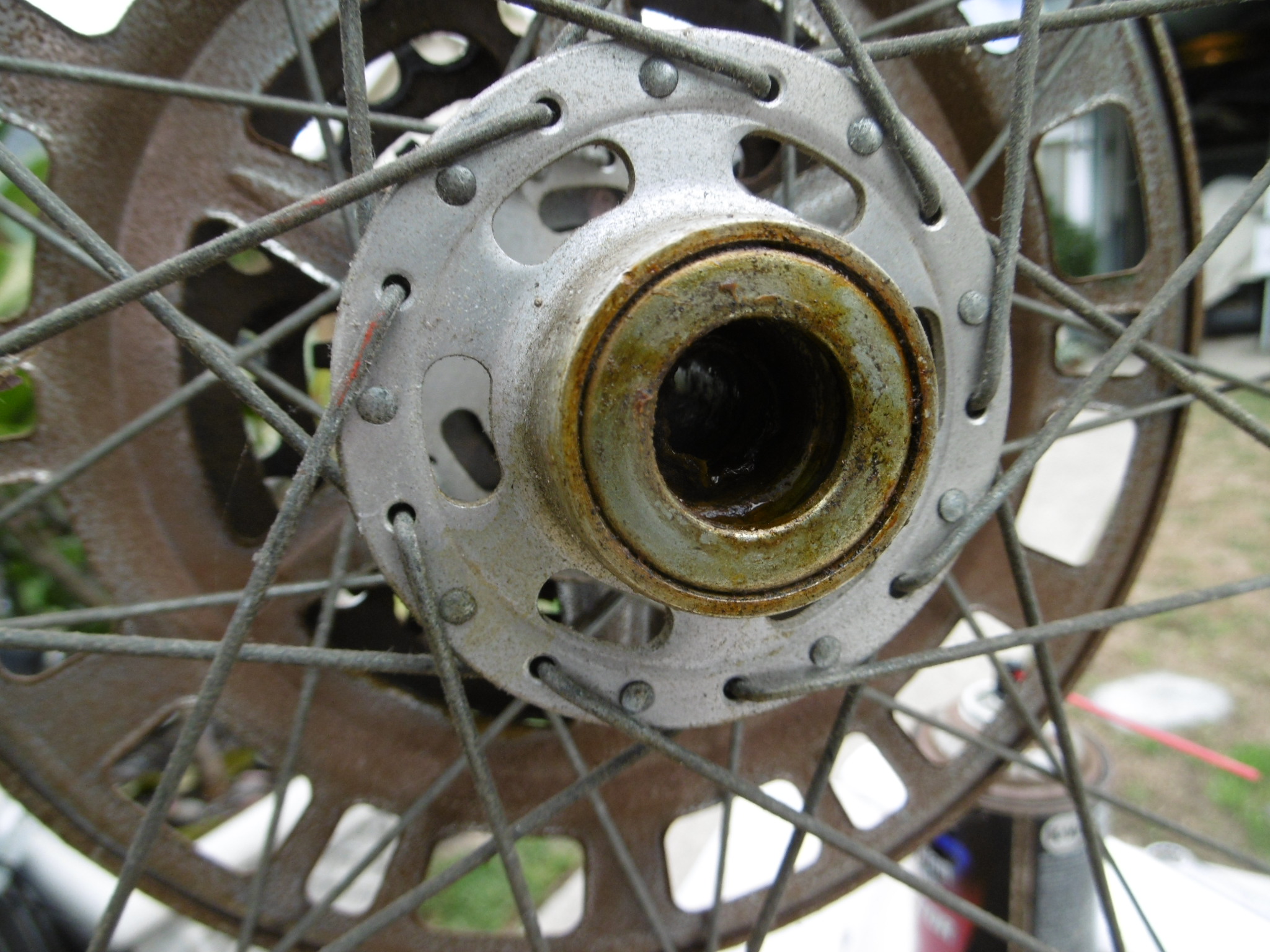Had to clean up the old gum wall residue on the wheels, also cleaned up the old dried-up grease from the races and bearings ... then re-greased them before reassembly (IMG:style_emoticons/default/FERG.gif) Just for reference, I bought this bike in the early 70's, right about the time I bought my first 914 (IMG:style_emoticons/default/cool_shades.gif) |