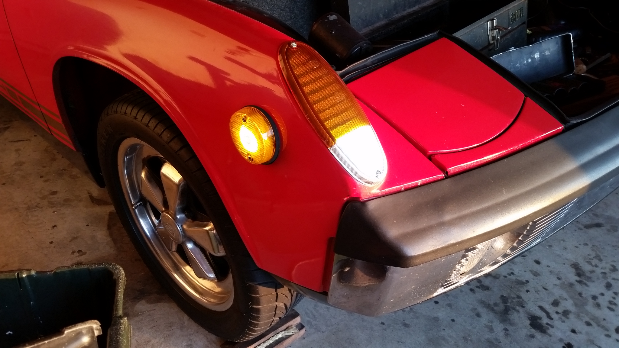 Finally getting around to installing new front turnsignal bucket on the driver side. Cleaned up some of the rust and rattle can the paint. I'm installing Euro-type front LED turnsignals. I've had these green LED boards sitting around for a year so I figured I'd at least put one set on my car.