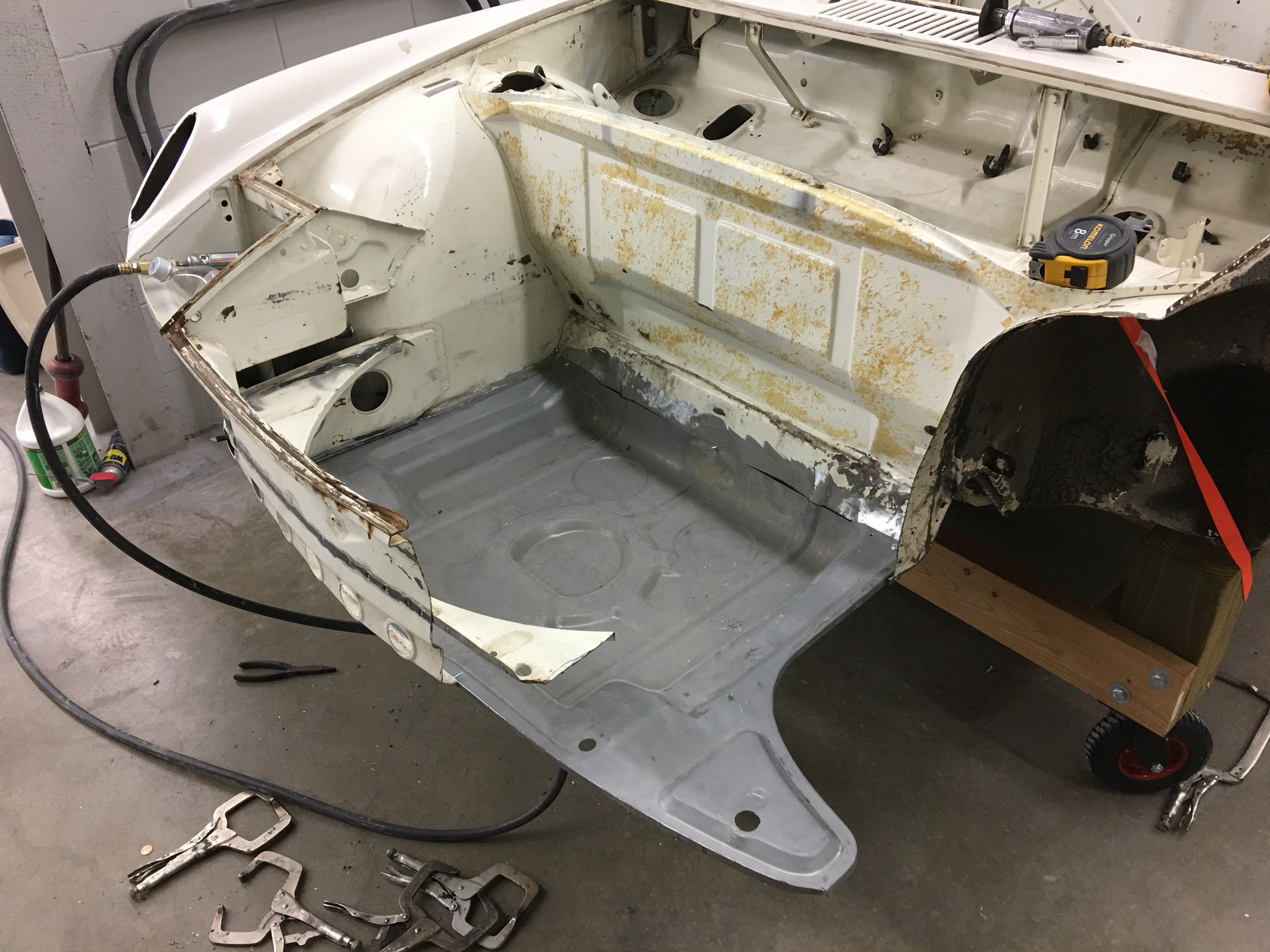 QUOTE(BeatNavy @ Feb 23 2017, 05:56 AM) It is a good feeling to stop cutting out and start putting back. That's some major surgery right there. That RD front trunk pan is beautiful - looks like you're still working it, but is it fitting in pretty easily? It is fitting easily. As they state on the RD site, some adjustment has been necessary, but nothing major. The holes for the headlight drain tubes are undersized, as the original pan had flanges bent downward, but that extra operation is not performed on the new pan. No big deal - I just reamed the holes out a bit to fit. I do want to stress, though, that without this new pan, I probably would have parted the car out instead of being able to save it. It had pretty extensive front end damage, plus holes for the A/C condenser. It was also beneficial that they sell the triangular stiffening parts and the front suspension mounts. Restoration Design kept another one on the road! |