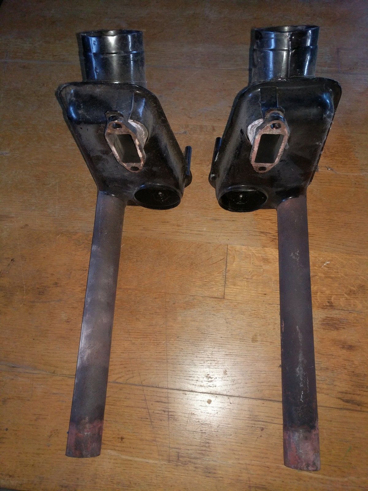 (IMG:http://www.914world.com/bbs2/uploads/post-18761-1489611766_thumb.jpg) OT - I removed the head-pipe/HEs off of my '66 912 about a year ago, repaired a cable guide tube on the passenger's side, blasted and painted them with 2000° paint, but somehow misplaced the driver's side (IMG:style_emoticons/default/dry.gif) Whilst searching for a replacement, came across a really nice pair for a dynomite price on ebay (prior to my cc getting hacked during the w/e) (IMG:style_emoticons/default/mad.gif) ... (BTW, new cc is on the way so I can use paypal again in a day or so). In any event, the pipes showed up while I was out of town last week ... just opened the box today (IMG:style_emoticons/default/mueba.gif) Will blast and repaint the pipes, but the boxes look good enough to use as-is (IMG:style_emoticons/default/smile.gif) |
