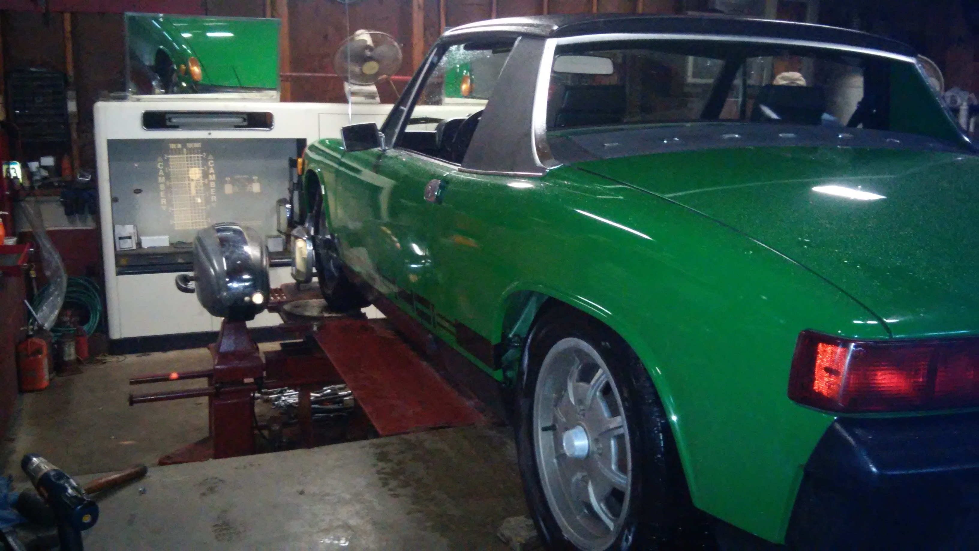 Drove it today - was perfect weather -75, before that I polished all four wheels and clean up the car little bit to drive a few days to work this week I actually did way more on the other cars the last two days brake job on a jaguar etc etc- lots of Poland right now here on the East Coast it's hard to keep the car is clean so every car got a thorough washing clean and wax oh and mounted the TV in the garage !-got an outdoor TV given to us this week now I can watch the game while working on the 914!