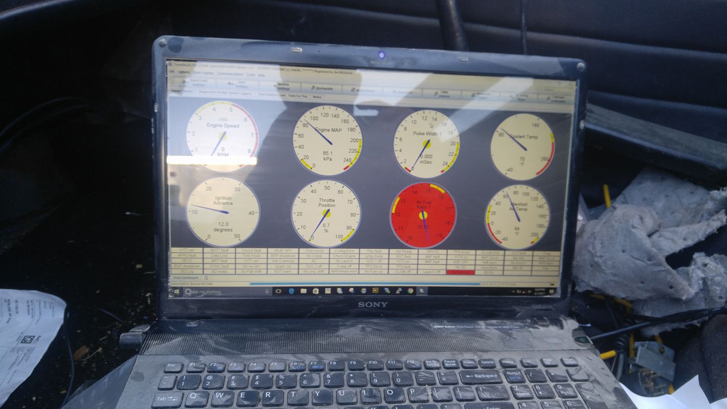 hooked up the green car to the laptop and got it to start and idle.