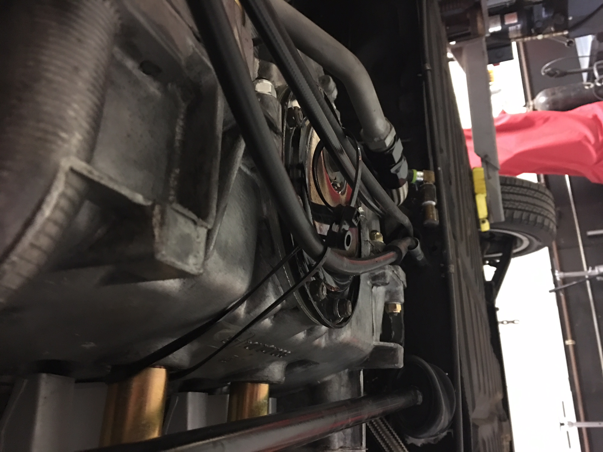 I had the 'BB' on ramps in this spot to do the hyd. clutch thing, but it is what it is ... so we moved it out of the way. Doing the job on the lift will be much better (IMG:style_emoticons/default/shades.gif) It's Miller time now (IMG:style_emoticons/default/beer3.gif) |