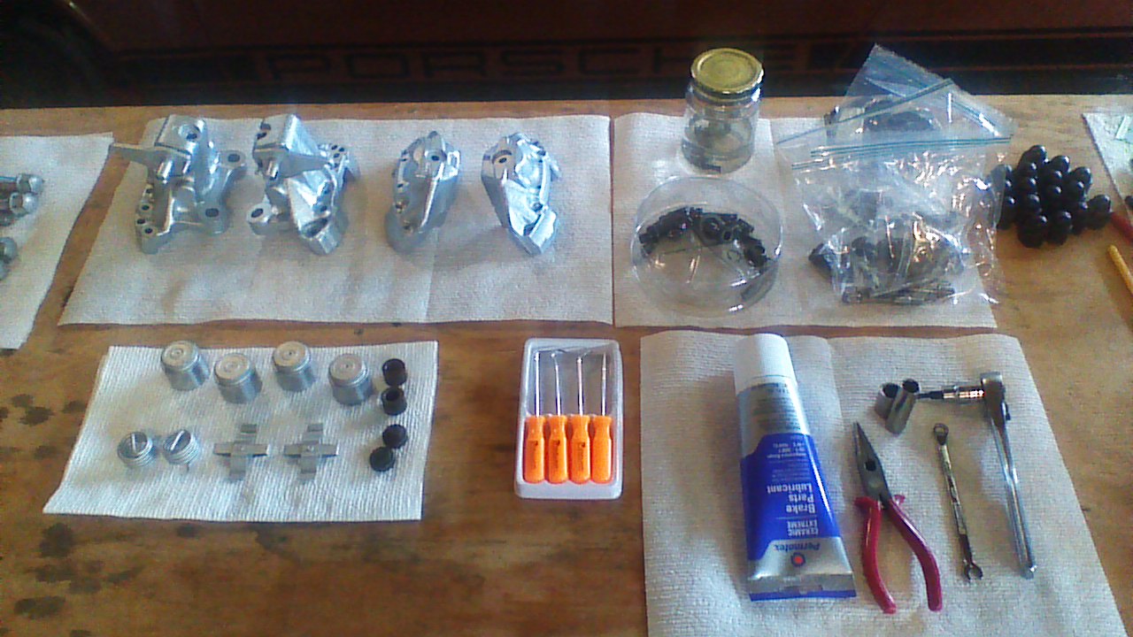 Rebuilding my rear brake calipers. Finally to a point where I can begin assembly today. Removing rust down to bare metal with vinegar soaking and wire brushes very tedious but effective. Paint turned out well.