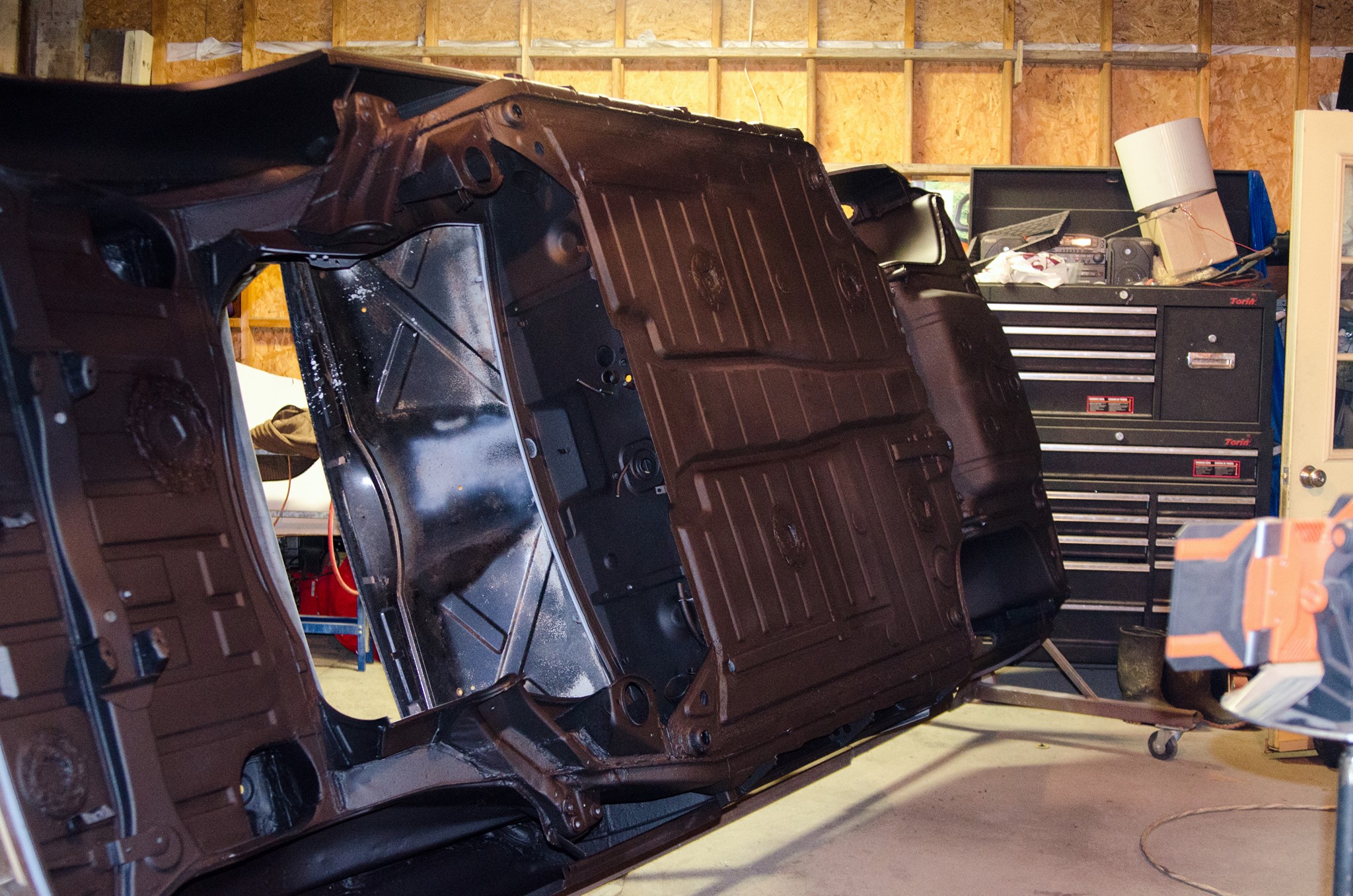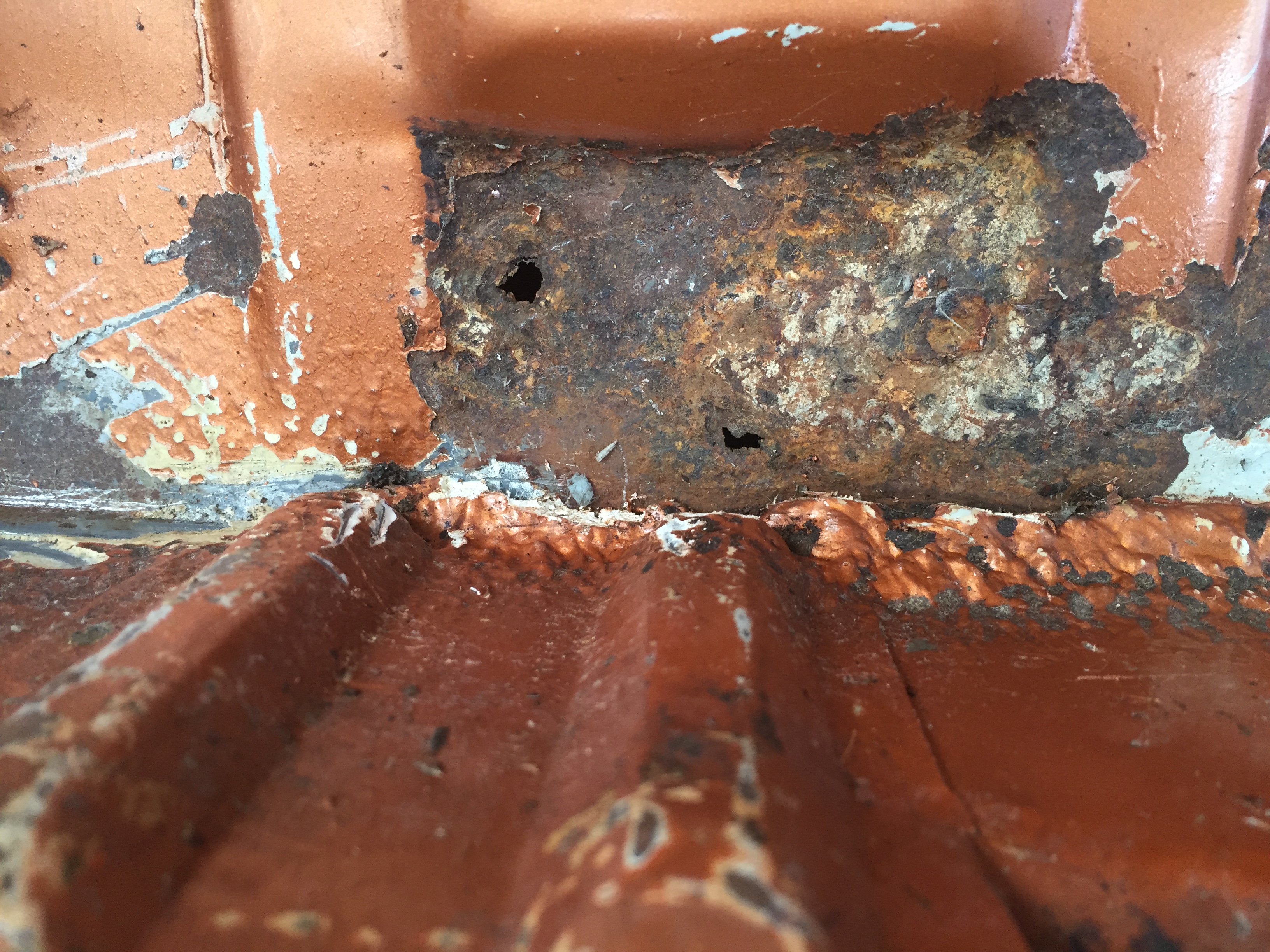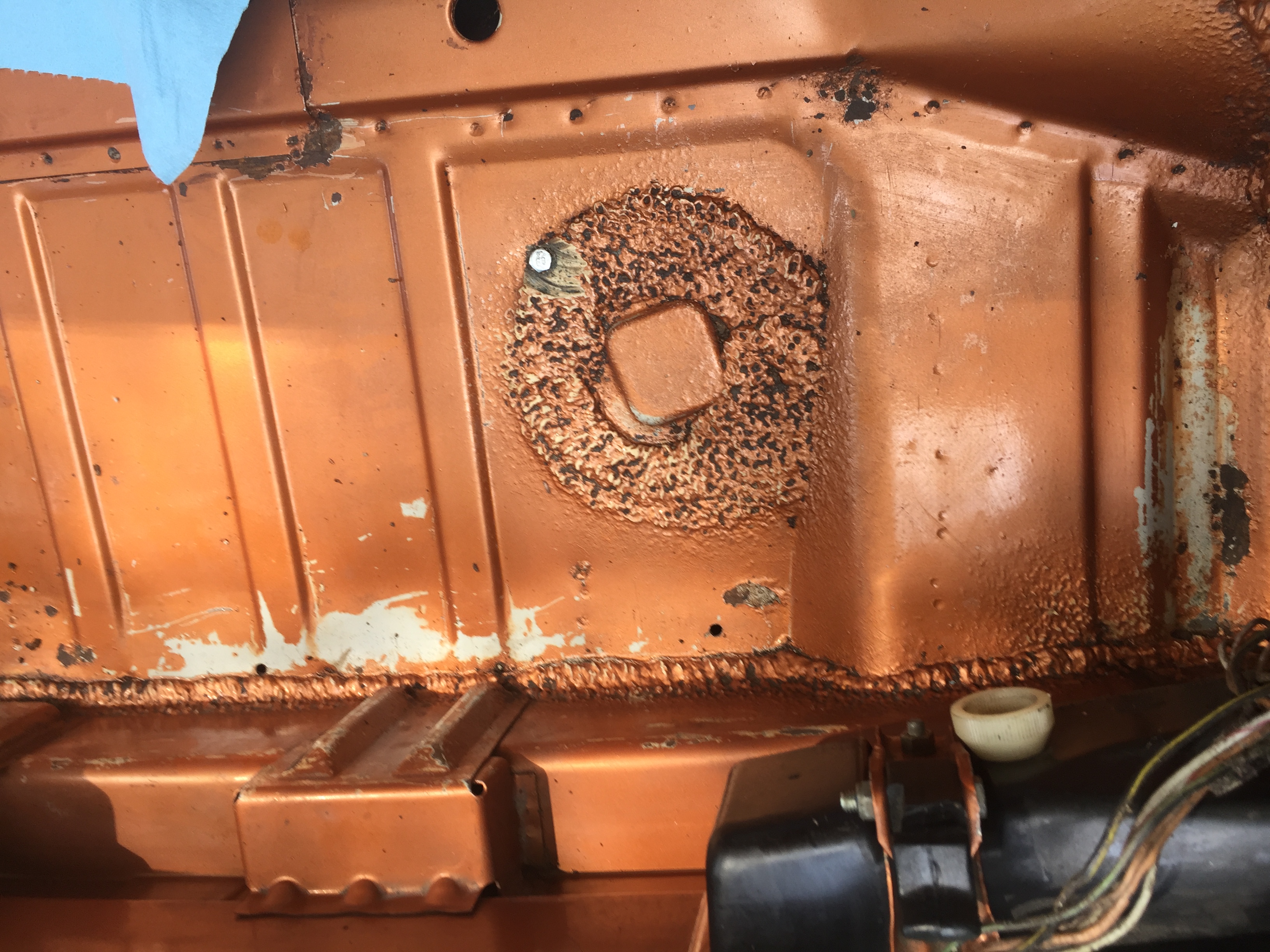 cleaning up my trunk today, getting the overspray from a zelous zebart application that was also in the trunk, even on the wiring- the inssulation pad inder the carpet pad was ruined and niw i need a new one - found rust at the seam sealer end , one spot is about 2"by 1", will have to be cut out the rest was surface thank God!