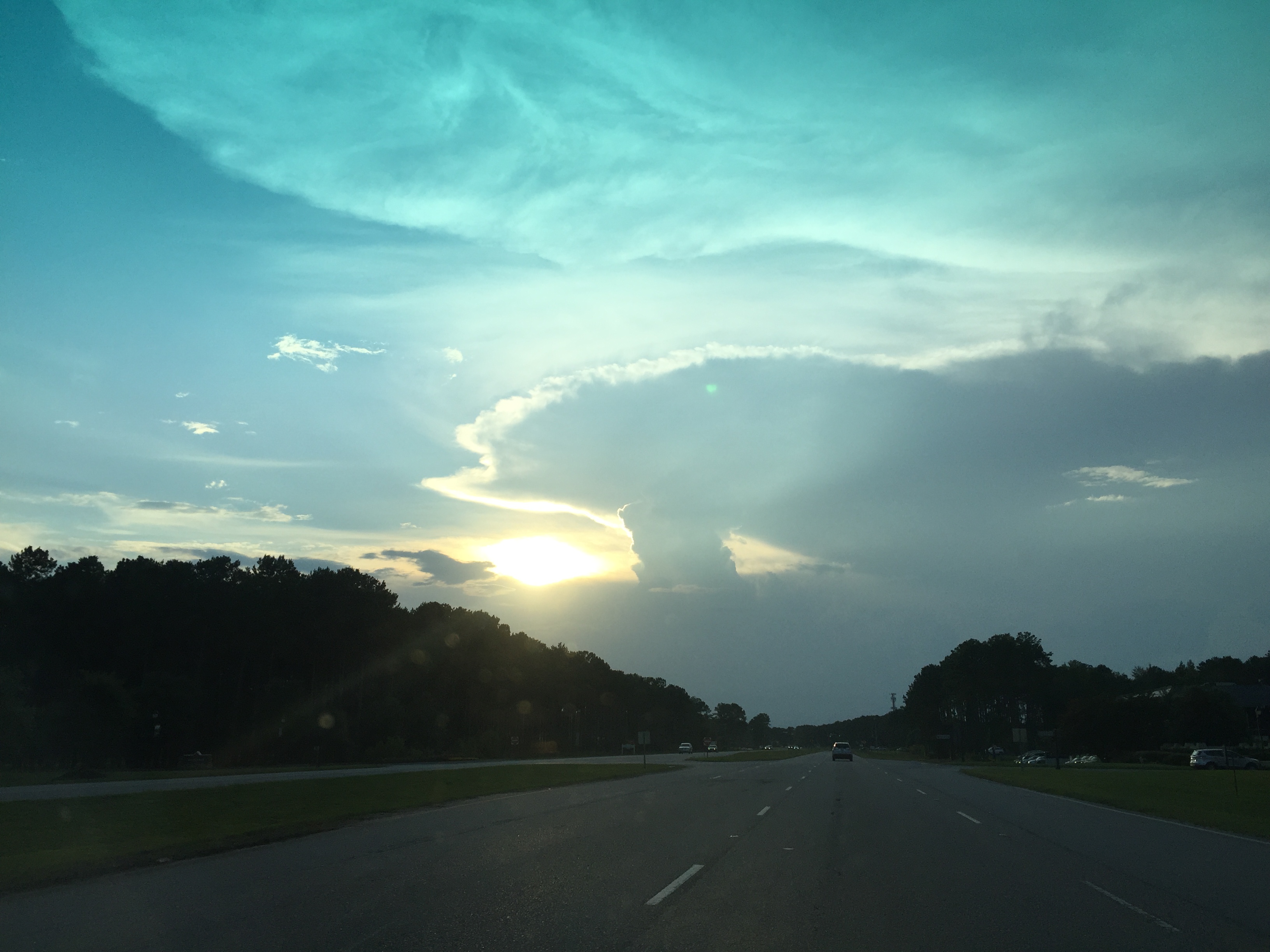 took an evening drive after the threat of rain passed- its been HOT and humid, and before this week, threat of rain every day, actual rain 15 out of the past 20 days so finally a chance to drive after drying it out from the last storm i go caught in 3 weeks ago- leaking came from water getting past the door windows rear vertical edge and the vertical seal it cones in contact with- thst has to be adjusted somehow! until then driving only on dry days . beautiful sunset