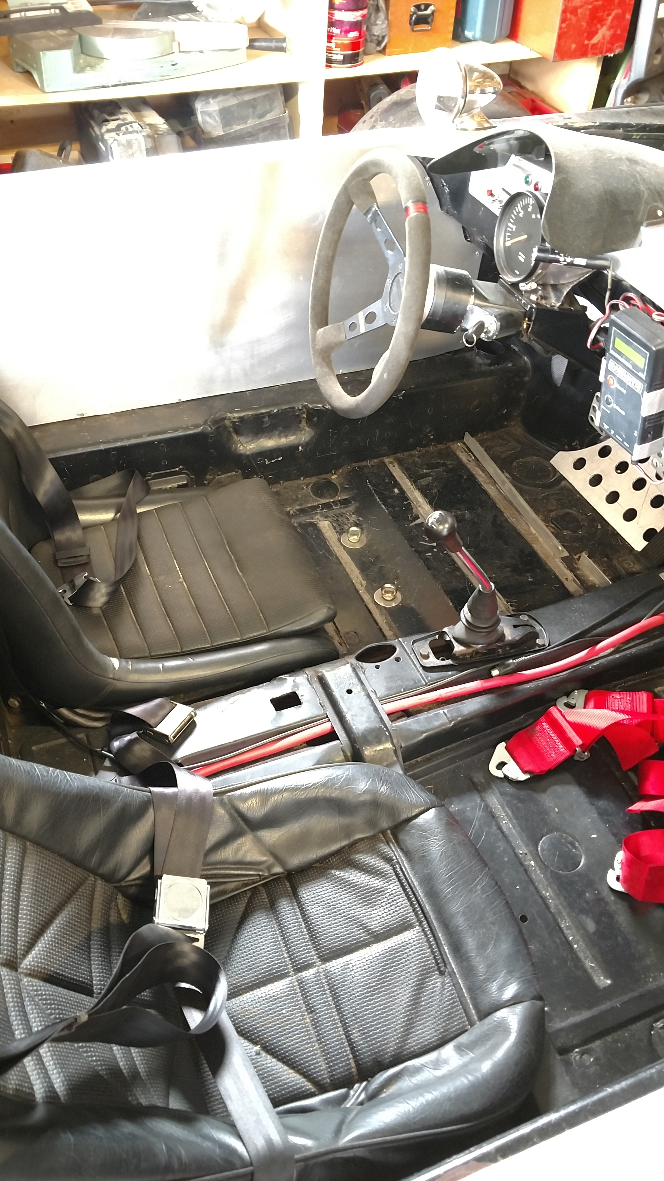 Body work done, with the GT fibreglass bits fitted and finished off to fit a little better. Car comes home now to strip the rest of paint in prep for new paint. It's sitting high as its engineless...
