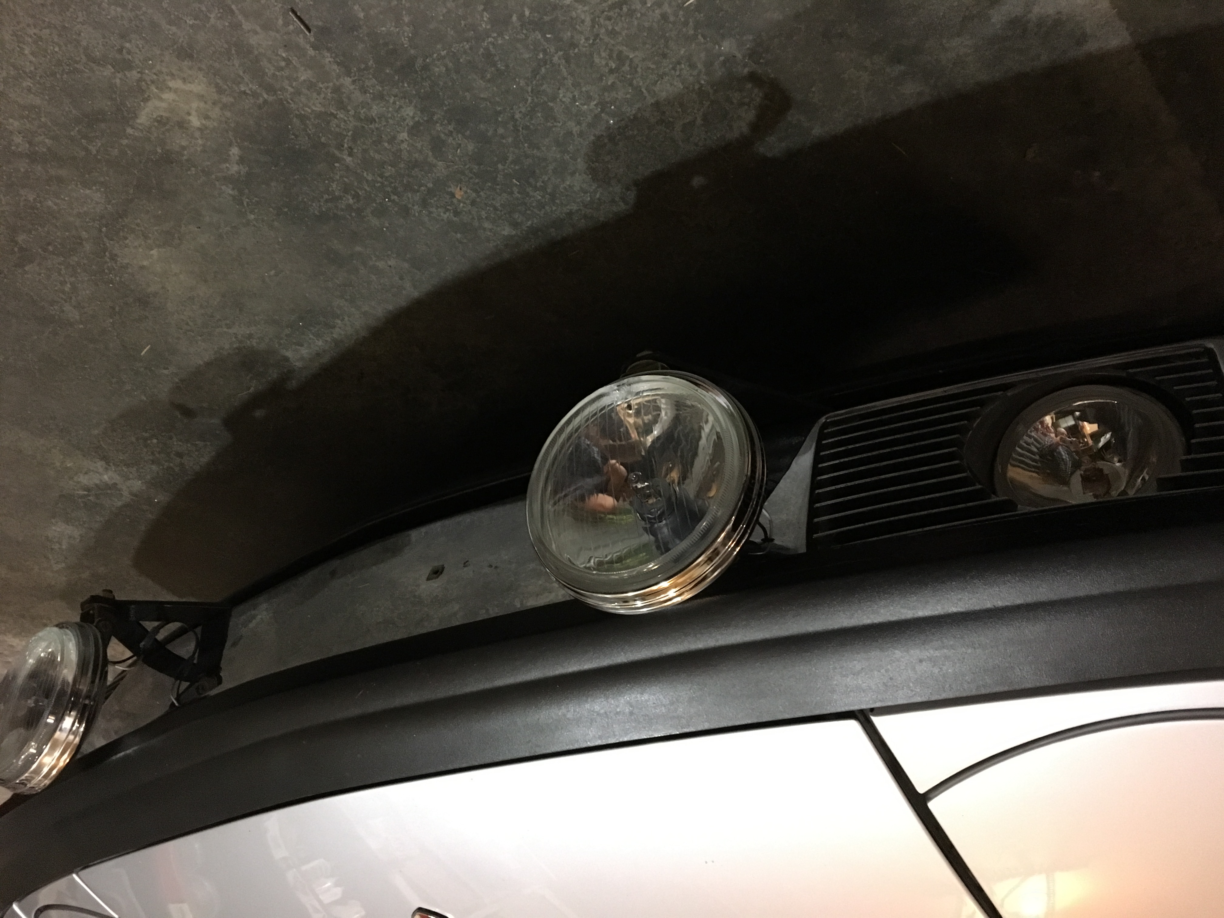 Front drivers take 3. Trimmed mounting bolts and the brackets are black. Probably the only idjot that needs multiple tries to get it right. Using rear defroster switch for lights. iPhone pics are so bizarre. Post the first pic and in preview it is upside down. Go back to pic and invert it and repost and again appears upside down. WTF? Did you use the holes where the rubber bumperettes would be mounted or are these new holes you drilled? Also, what brackets are you using? I have two sets of 6” Cibie’s to mount. Some yellow fogs that will mont in front of where the original fog lights go and then two driving lights to mount similar to what you have done with yours. I don’t Have any mounting brackets yet. |