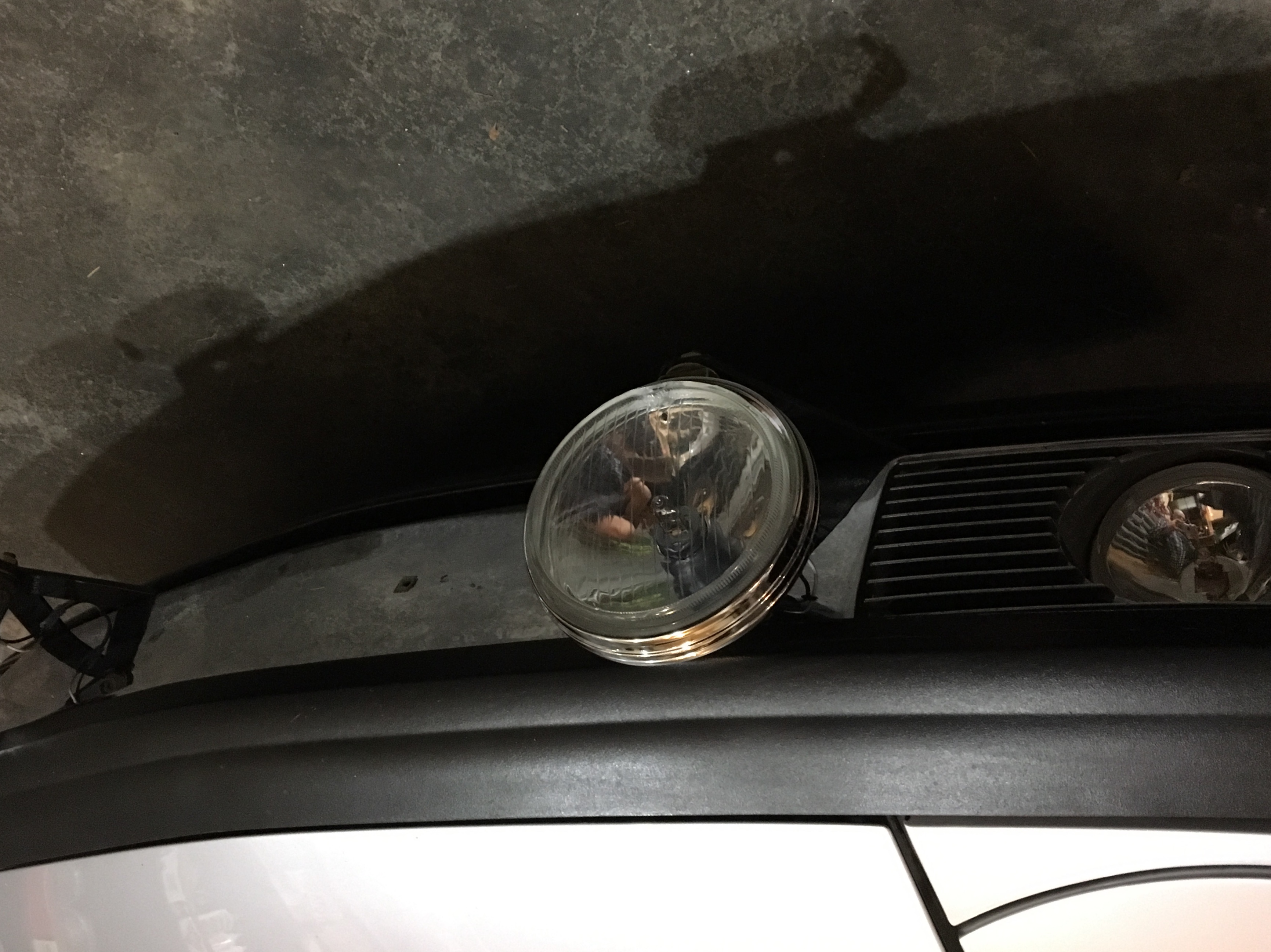 Front drivers take 3. Trimmed mounting bolts and the brackets are black. Probably the only idjot that needs multiple tries to get it right. Using rear defroster switch for lights. iPhone pics are so bizarre. Post the first pic and in preview it is upside down. Go back to pic and invert it and repost and again appears upside down. WTF?