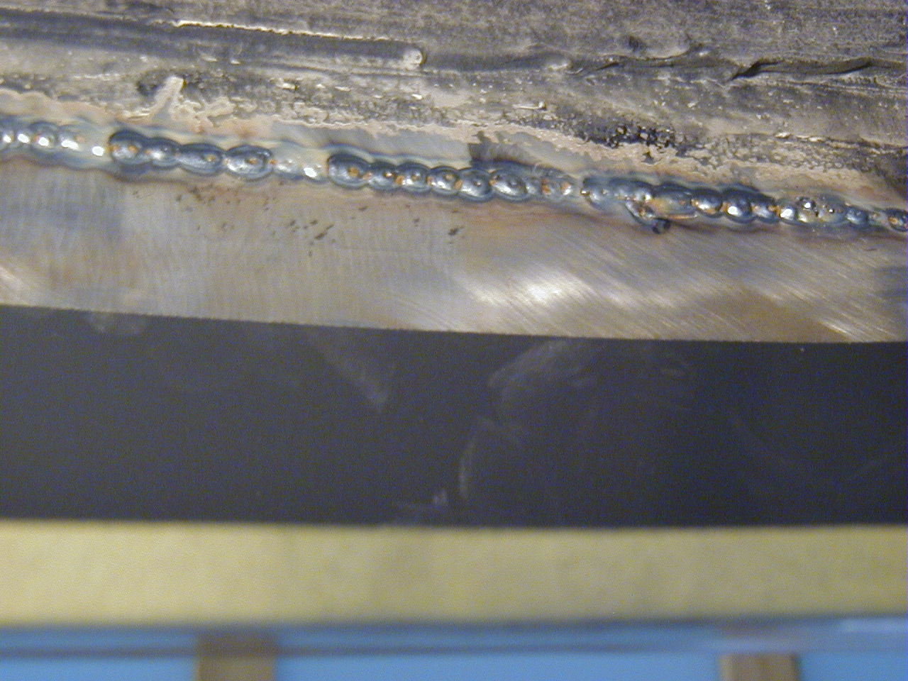 I didn't take a pic of the top side of the flair with all the small tack welds, but here is what it looks like from the underside, after it's been tacked solid all the way around.
