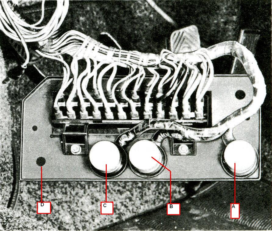 1 addtional headlight relay . 2 headlamp flasher. 3 horn relay, 4 square turn indicator and hazard warnig flasher unit Will it go in location D in Wolfgangs 6 pic.? Hpoe this Helps , Jeff (IMG:http://www.914world.com/bbs2/html/emoticons/burnout.gif) |